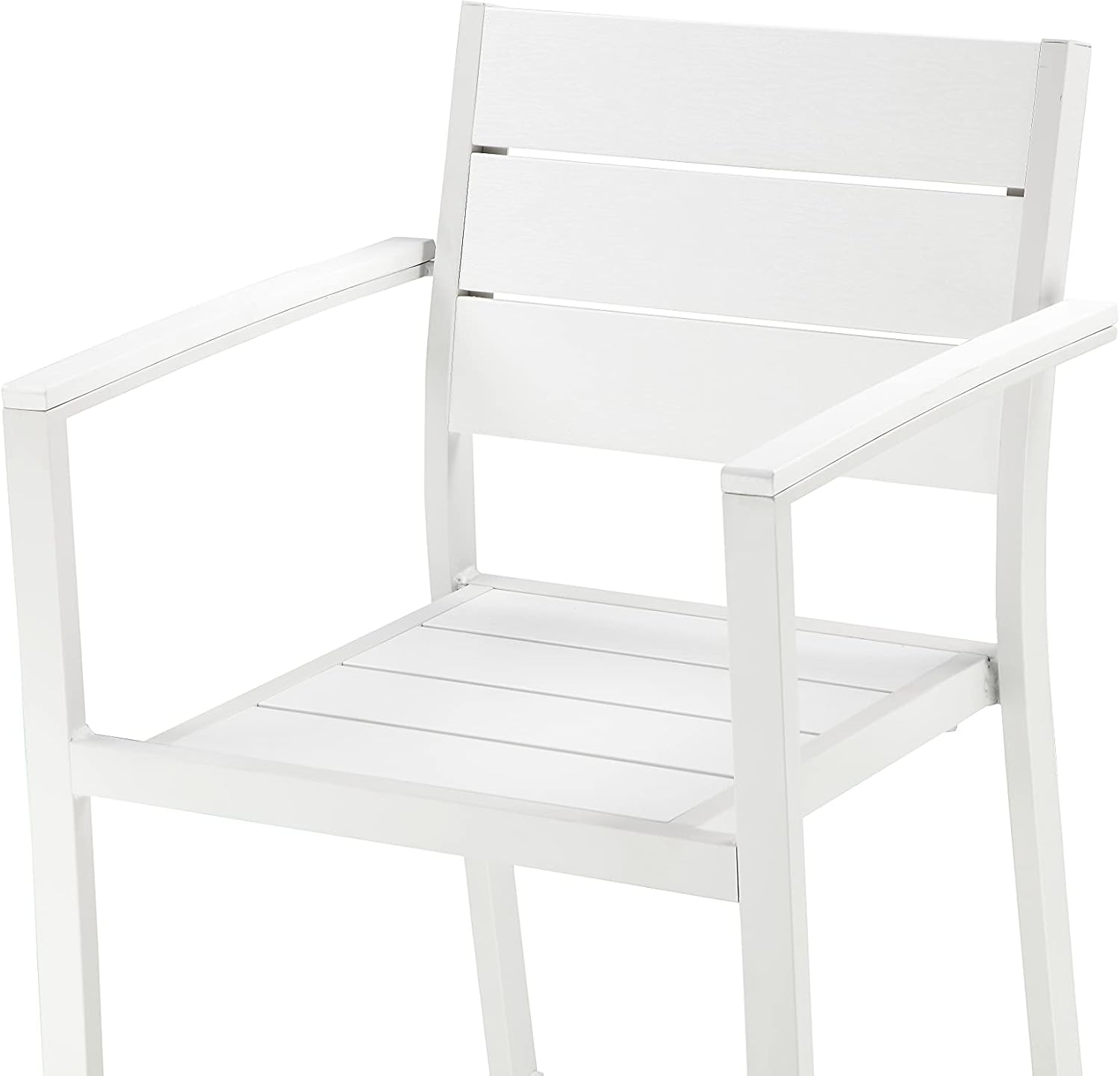 Large 7 piece bar set. Set consist of 2 arm chairs, 4 side chairs, and dining table; chair sit Height is 30 inches. Arm chair Height is 39 inches. Table top Thickness is 4 inches distance between the two legs Width: 24 distance between the two legs length: 52
