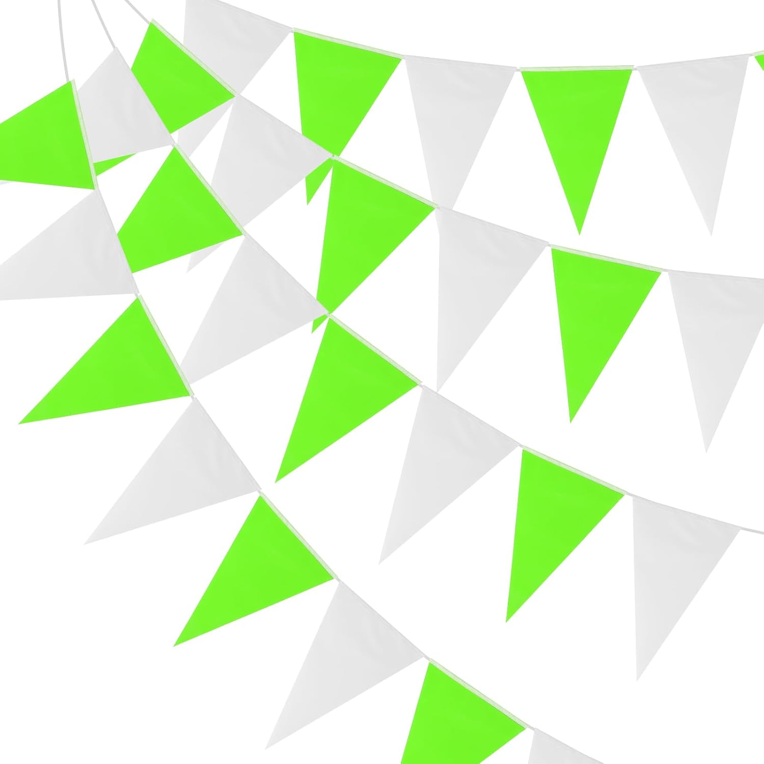 Pennant banner flags are suitable for various occasions such as parties, holidays, kids' birthdays, grand openings, carnivals, sports events and celebrations to elevate the festive atmosphere.Specification:Color: Yellow Blue WhiteMaterial: PolyesterRope Length: 15m / 49ftFlag Size: 18 x 28cm / 7 x 11inchNumber of Flags Per String: 30Packing List: 60 Pcs x Pennant Banners Flags (2 String)Advantage:Triangle banner flags are crafted from durable polyester fabric with satin rope. They are sturdy and not easily broken or slid, making them suitable for both indoor and outdoor use.Instruction:These banner flags are perfect for DIY enthusiasts, you can draw any pattern you want on the banner.Note:Due to the difference in natural light and display resolution, the item color displayed in photos may be slightly different from the real object.