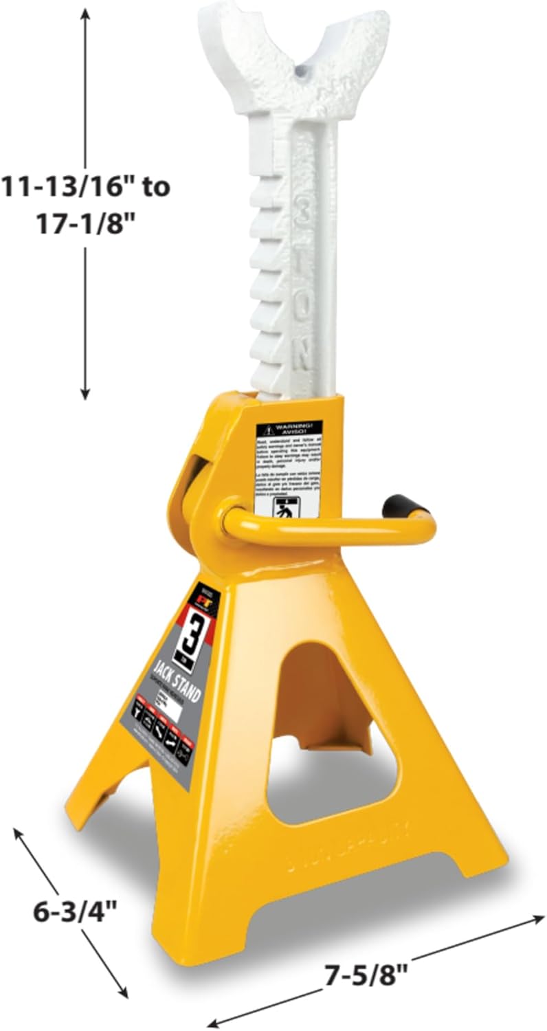The Performance Tool 2 Ton Double Lock Jack Stands are a must-have for any vehicle maintenance or repair task. Built with heavy-duty steel construction, these jack stands provide the strength and durability needed for all your lifting needs. The self-locking ratchet mechanism allows for easy and precise adjustments, ensuring a secure and stable lift every time. Additionally, the double-locking pin design offers extra safety and security, providing peace of mind while you work on your vehicle. The large saddle makes it easier to find and lift your vehicle's lifting points, ensuring a stable and secure lift every time. And with a weather-resistant powder-coated finish, these jack stands provide protection against rust and corrosion, ensuring long-lasting performance.