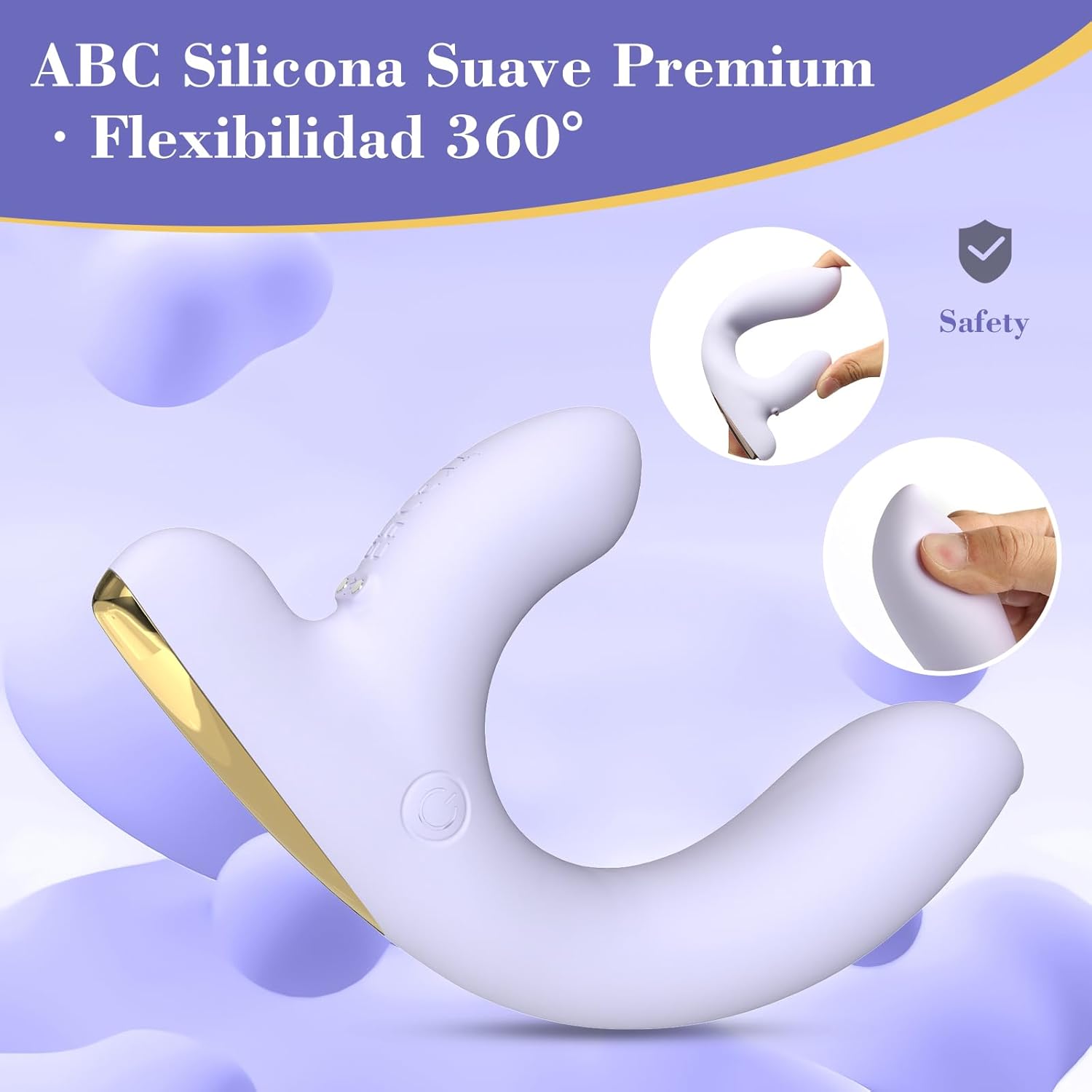 This ergonomically designed personal massager offers a versatile experience with 9 different vibration modes. Made with soft, high-quality materials, it features a sleek white finish with gold accents. Its compact dimensions of 172mm long and 32mm wide make it discreet and easy to carry. USB rechargeable battery provides up to 100 minutes of continuous use and supports various charging methods, including wall adapter, power bank, car charger or computer. The curved design perfectly adapts to the contours of the body for precise stimulation. Intuitive controls allow you to easily switch between different vibration patterns to customize the experience to individual preferences. Includes USB cable for convenient recharging.