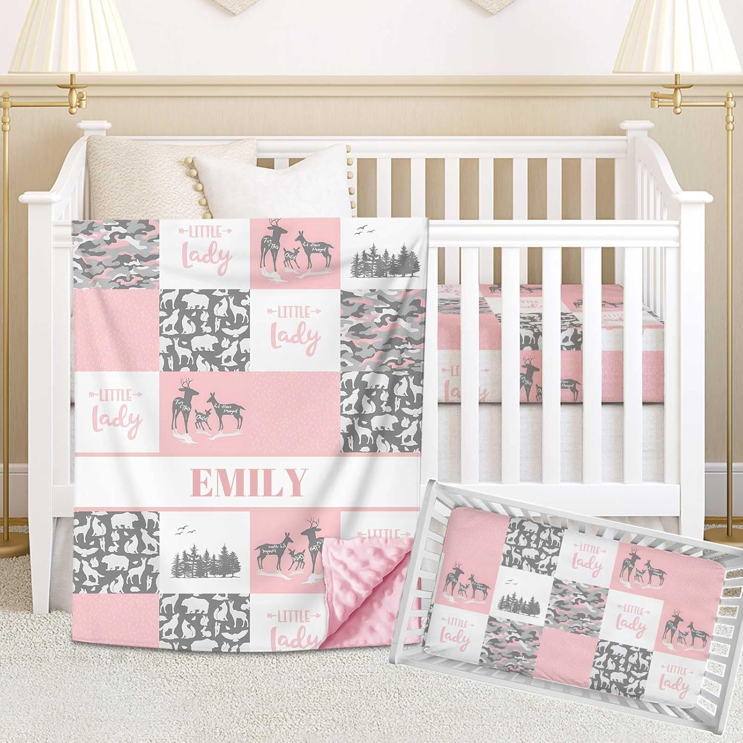 Our customized girl and boy crib bedding set includes cute and super soft baby comforter, generously sized 30" by 40", crib sheet designed for standard crib mattress, measuring 28" by 52" with 8", perfectly fitting over all standard cribs. The fabrics in our crib set have been carefully selected to provide maximum comfort for your baby during nap time and bed time. There is no doubt in our mind that you will love our product. If there are any issues, please contact us immediately and we will provide a solution. Our customer's satisfaction is utmost priority and we will personally respond to each message! Please Click the " Customized Now " to create your baby's unique toddler crib bedding sets.