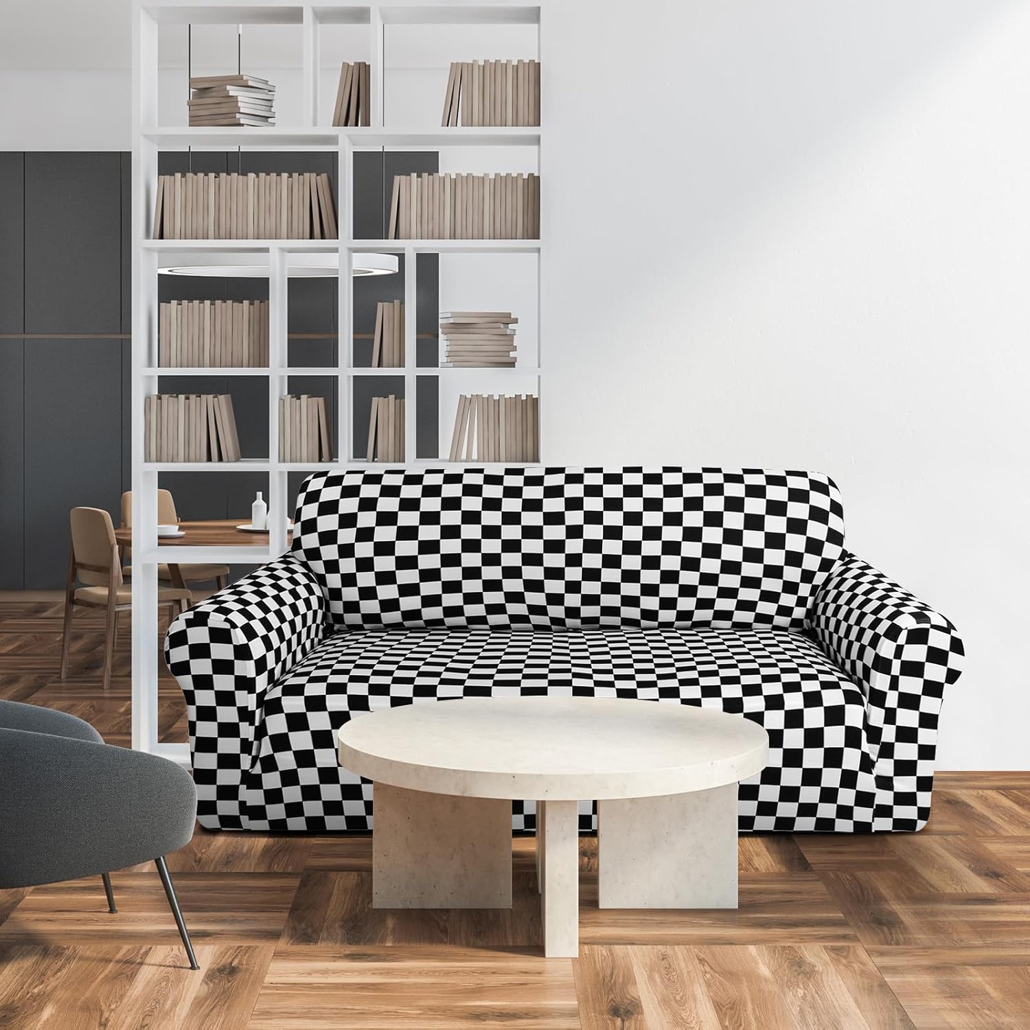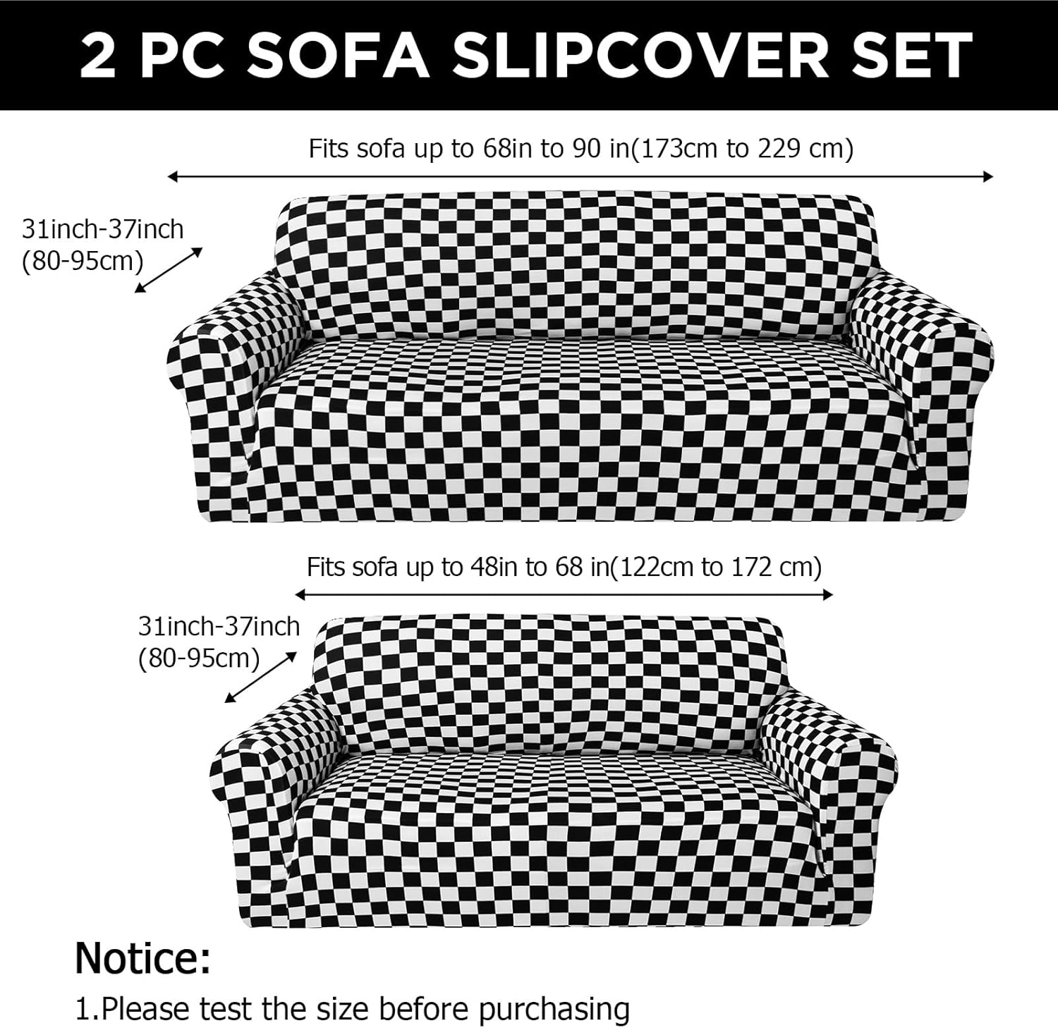 Features: Discover the good blend of functionality, style, and protection for your precious sofas with our spectacular Sofa and Loveseat Cover Set. Masterfully crafted from black and white plaid milk silk fabric, this cover set impresses not only with its opulent look but also offers stellar longevity. The trendy Black and white plaid color adds an extra layer of sophistication and seamlessly integrates with various home decors. The ingenious design of our sofa cover set enables it to prominently display the innate charm of your furniture, at the same time providing complete protection. Suitable for your living room setting, it flawlessly fits your regular sized sofa and loveseat. Specifications: Material: milk silk fabric Color: Black and white Package includes: 1 X sofa cover 1 X loveseat cover Notes: Manual measurement, please allow slight errors on size. The color may exist a slight difference due to different screen displays