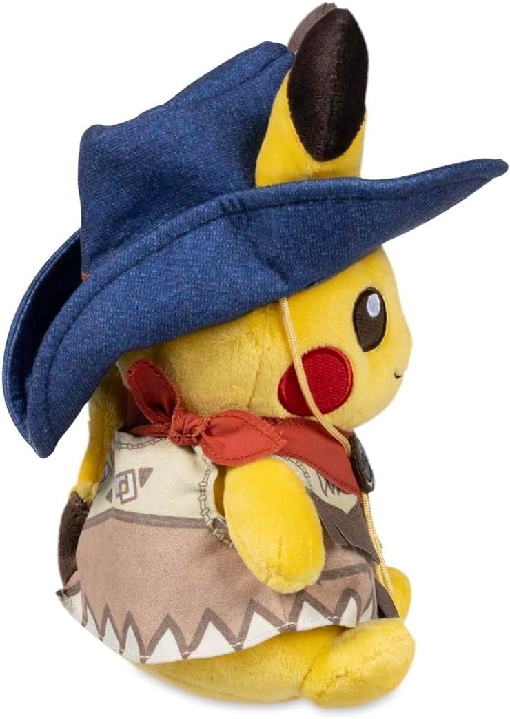Howdy, Partner!Wearing a big blue hat and patterned vest, Pikachu is all suited up for an adventurous day out on the range! Saddle up for the journey by adding this plush to your own collection for a rootin'-tootin' good time.Includes plushAn Electric-type Pokémon originally discovered in KantoWestern-style hat and vestAlso available as a plush key chainRecommended for ages 4 and upOriginally released in the Run Run ! Desert collection in JapanPokémon Center OriginalItem Dimensions: 5.9 x 6.7 x 7.9 inches (14.9 x 17 x 20 cm)Materials: polyester / polyurethane foamCare Instructions: Surface wash only.Item Weight: 4.6 OZ