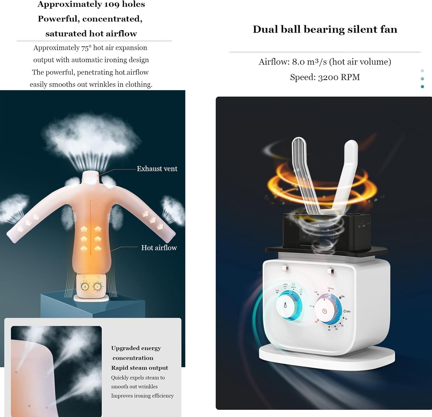 Introducing our innovative shirt steamer machine, designed to meet the needs of families, students, travelers, and busy professionals alike. This versatile garment care solution is perfect for anyone who values convenience and efficiency in their daily routine. With a compact and user-friendly design, our shirt steamer is easy to install and disassemble, making it an ideal choice for those on the go. Whether you need to freshen up a shirt before an important meeting or ensure your travel clothes look their best, this steamer saves you precious time while delivering exceptional results. Our upgraded model features a double pole design for enhanced stability, ensuring that your clothes are safely and effectively steamed. The strategic hot air outlet not only promotes efficient steaming but also includes a safety feature that automatically cuts off the power supply when tipped over, prioritizing the safety of your household. Specifications: - Product Name: Automatic Shirt Steamer Machine - Rated Power: 1000W - Rated Voltage: 110V - Power Cord Length: 0.8m - Main Unit Dimensions: 20x29.3x48 cm (7.9x11.5x18.9 in) - Clothes Dimensions: 163x117x43 cm (64.2x46.1x16.9 in) - Clothes Dryer Cover Dimensions: 135x60 cm (53.2x23.6 in) - Net Weight: 3.6 kg - Gross Weight: 3.85 kg - Product Color: White Packing List: - 1 x Steam Closet for Clothes (includes all accessories) Please note that this product is customized and cannot be returned or exchanged once sold. The actual color may vary slightly due to monitor brightness and lighting conditions, and we kindly ask you to allow for slight deviations in the measurement data. Thank you for your understanding. Elevate your garment care routine with our shirt steamer machine and enjoy wrinkle-free, fresh clothes effortlessly!