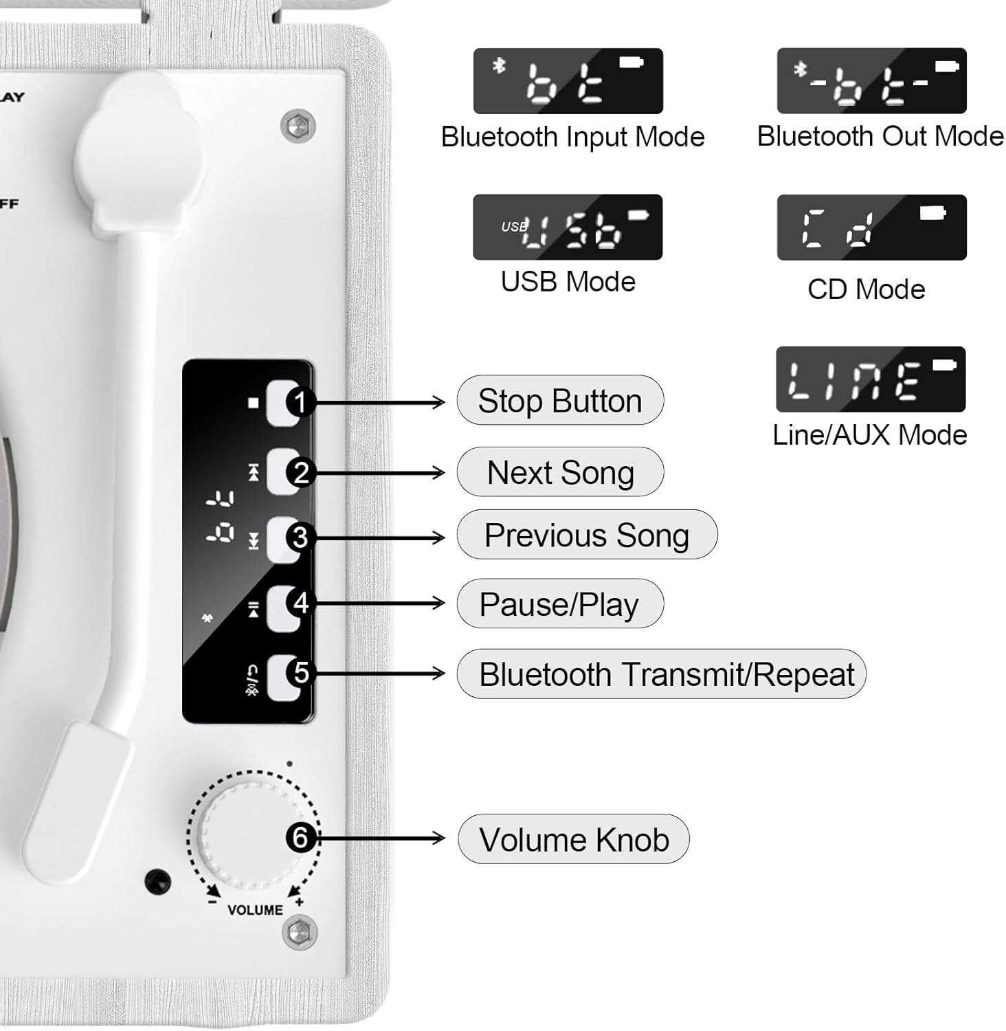 • 【LED Display & Easy Control】Equipped with an LED screen and simple button operation interface, this vintage cd player makes it easy to manage playback, switch modes (CD/USB/AUX/Bluetooth), and adjust settings. The intuitive interface ensures anyone can enjoy music effortlessly. This portable cd player with speakers is designed for convenience and style.