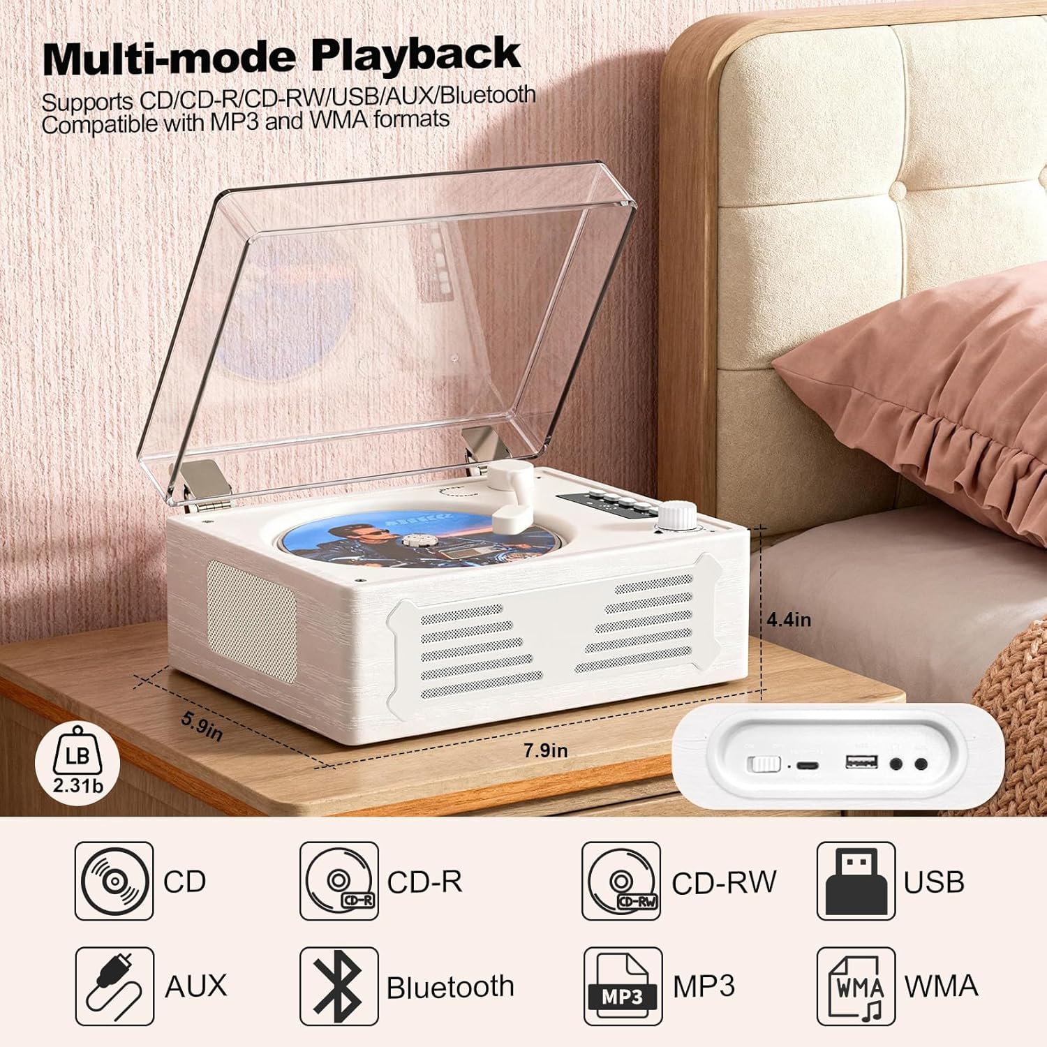 • 【Retro & Compact Design】This retro cd player combines vintage charm with modern functionality. With bright white finishes, it brings a touch of classic style to any room. Small and lightweight, this portable cd player is perfect for home, office, or even moving around the house. It’s crafted with MDF wood and leather finish for durability and timeless appeal.