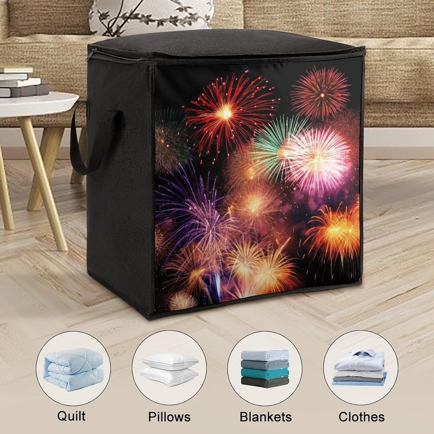 The Beautiful Fireworks printed Large quilt storage bag fit easily into closets or shelves, and are powerful enough to hold your daily items, protecting your stored items from moisture, dust and damage, keeping them fresh and clean Bedroom storage bags can also be used to store seasonal and Christmas decorations, making them a suitable Christmas gift for family and friends