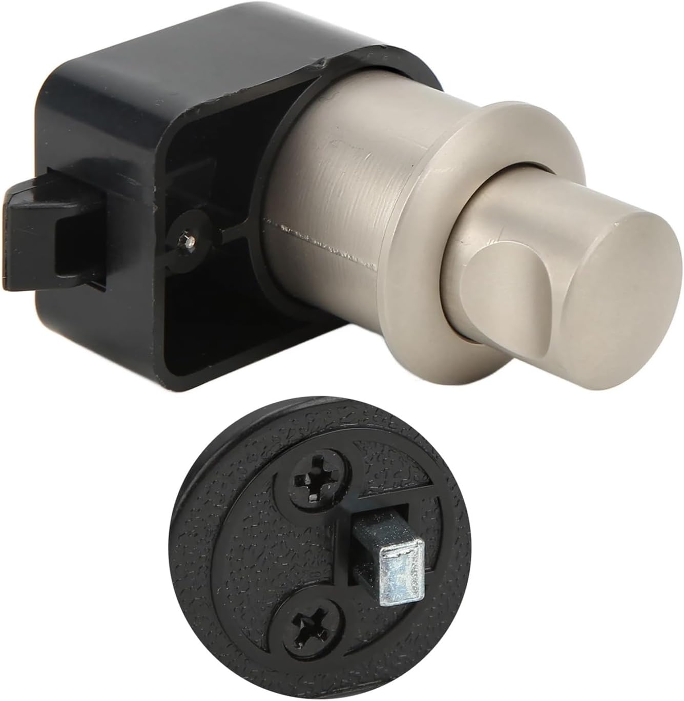 RV Push Button Lock Zinc Alloy Door Cabinet Knob Latch Motorhome Yacht Boat Drawer Feature:1. Function: Just pull the button to open the door, buttons in addition to can be opening and locking doors, also can use when shake handshandle.2. Wide Application: Push button lock is suitable yachts, RV drawers, vessel desks, cabinets, cabinet doors, wall cabinet.3. Dimension: Cutting hole diameter is approximately 25mm/ 0.98in, applicable cabinet thickness is between18mm/ 0.71in and 24mm/0.95in.4. Material: High mass galvanized alloy push button ensures the function of the lock. Pearl nickel, suitable all kinds of furniture.5. Easy Installation: Equipped with mounting screws, easy to install, no complicated tools required, convenient to use.Specification:Item Type: RV Drawer LockMaterial: Zinc alloy knob + black plasticbottomFinish: Pearl nickel/chrome platingCutting Hole Diameter: Approx. 25mm/ 0.98inApplicable Cabinet Thickness: Approx. 18-24mm/ 0.71-0.95inPackage List:1 x Drawer Knob Lock4 x Screw1 x Latch==========Hign-concerned : None