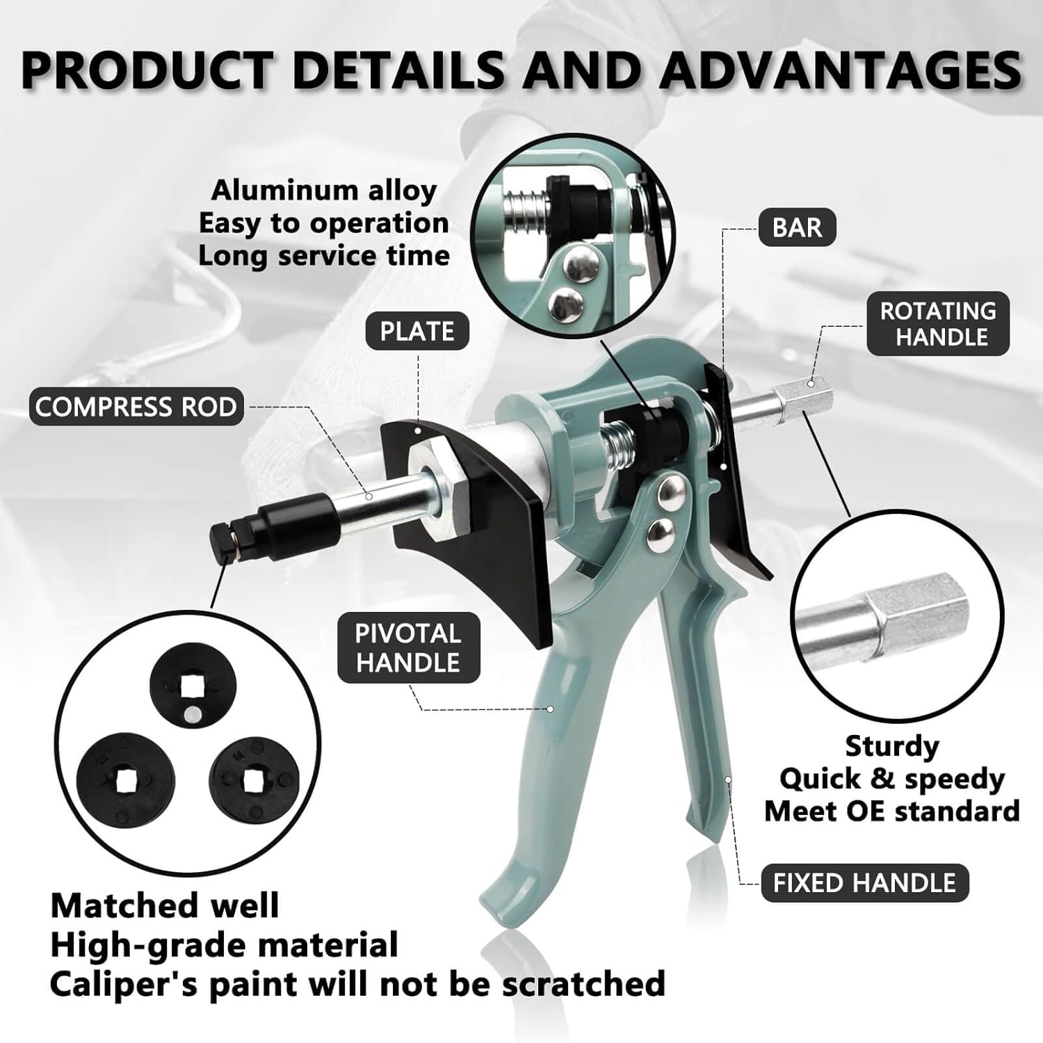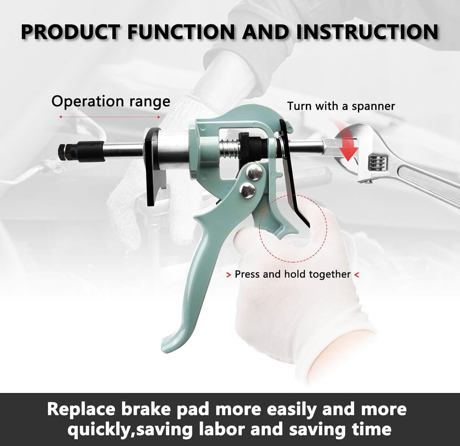 The Brake Pad Spreader and Piston Compressor Tool is the ultimate solution for quick and hassle-free brake pad replacement on double piston calipers. This versatile tool allows you to spread brake pads and compress disc brake pistons simultaneously, providing a seamless experience for both professional mechanics and DIY enthusiasts. With this tool in your arsenal, brake pad replacement becomes a quick and easy job. Say goodbye to tedious and time-consuming processes - the Brake Pad Spreader and Piston Compressor Tool streamlines the entire procedure, ensuring a smooth and efficient experience.Forget about those clunky knob handles and swinging handles—our squeezing handle is the real deal. It's smooth as butter to adjust and takes the pressure off your hands, so you can keep going without feeling worn out. Order yours today and make brake maintenance a breeze.