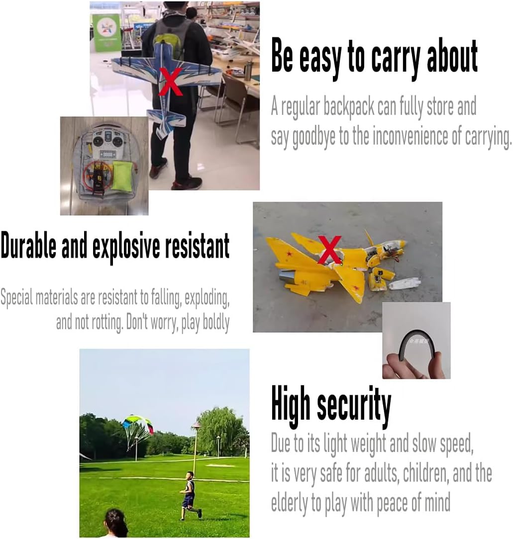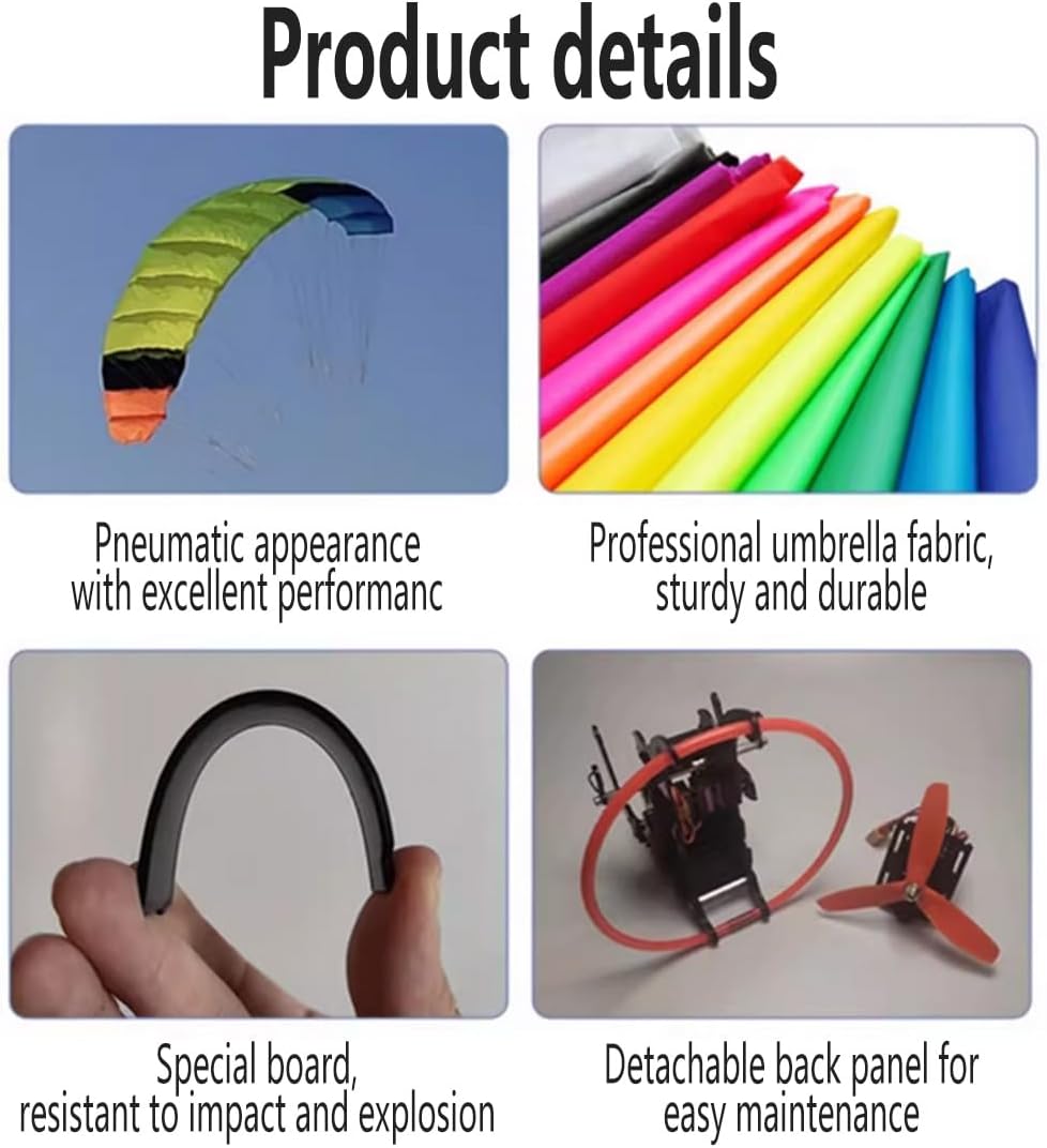 Specifications: .Material: Nylon + Plastic + Electronic Components .Wingspan: 100 cm .Area: 0.25㎡ .Spacing: 11 .Aspect Ratio: 4.5 .Glide Ratio: 6.5 .Wind Resistance: 0 .Model: Leaf1.0 .Motor: 1106 Motor .ESC: 12A ESC .Servo: 12G Metal Servo .Propeller: 3-inch 3-blade .Battery: 7.4V 25C 1100mAh .Product Weight: 500g .Package Weight: 1100g .Product Dimensions: 100 x 25 cm .Package Dimensions: 23 x 21 x 23cm .Packing: Carton .Ages: 16+Package Including.Parachute Wings * 1.Parachute Vehicle * 1.Accessory Pack * 1.Battery * 1.Charger * 1.Remote Controller * 1.Strap * 1