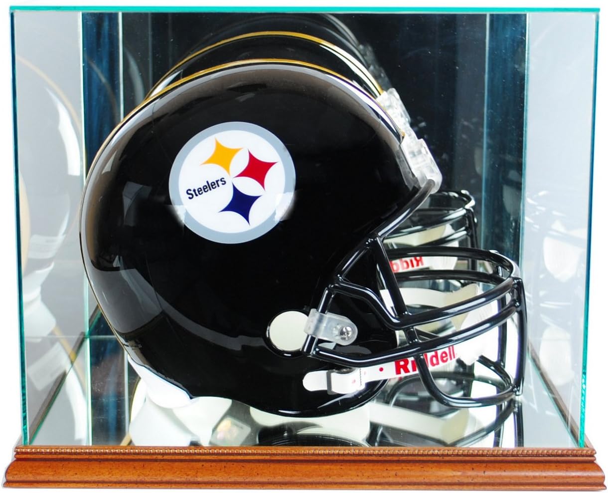 Proudly display your autographed football helmet with our Rectangle Football Helmet Display Case. This display case comes with mirror on the bottom and back to give a full view of your autographed helmet. This case is UV protected with Real Glass and is supported by real wood moulding.
