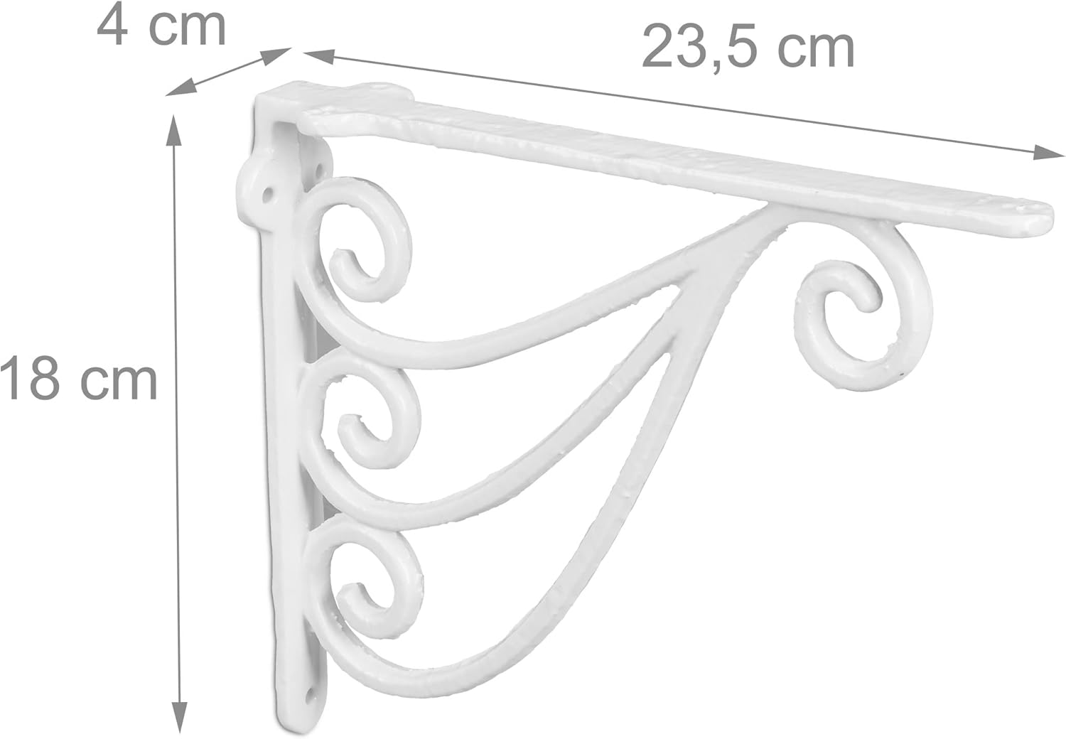 | Item Type Name | Relaxdays 2x Shelf Brackets, Rack Support, Cast Iron, Vintage Look, HWD: 23.5 x 4 x 18 cm, Angle for Shelves, White |