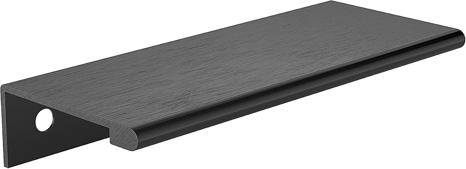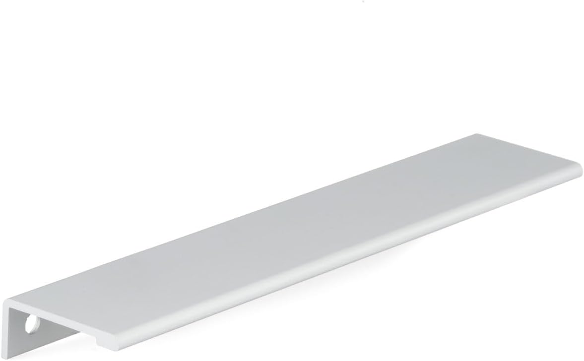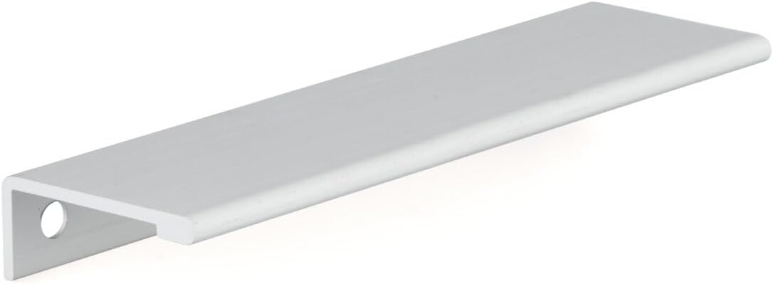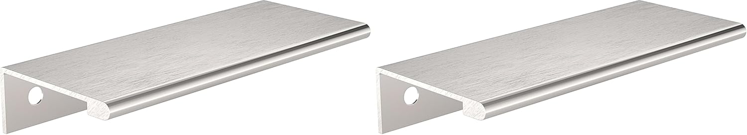 Contemporary metal edge pull by Richelieu. Ideal for giving your kitchen or bathroom that streamlined and urban look. It is recommended to use both sets of center to center holes for additional stability. Please note that the screws included with the products are a standard size of 1 in (25 mm) length, quadrex, pan head. They will fit with most of the popular melamine thicknesses, which range between 5/8 in to 3/4 in (16 mm to 19 mm).