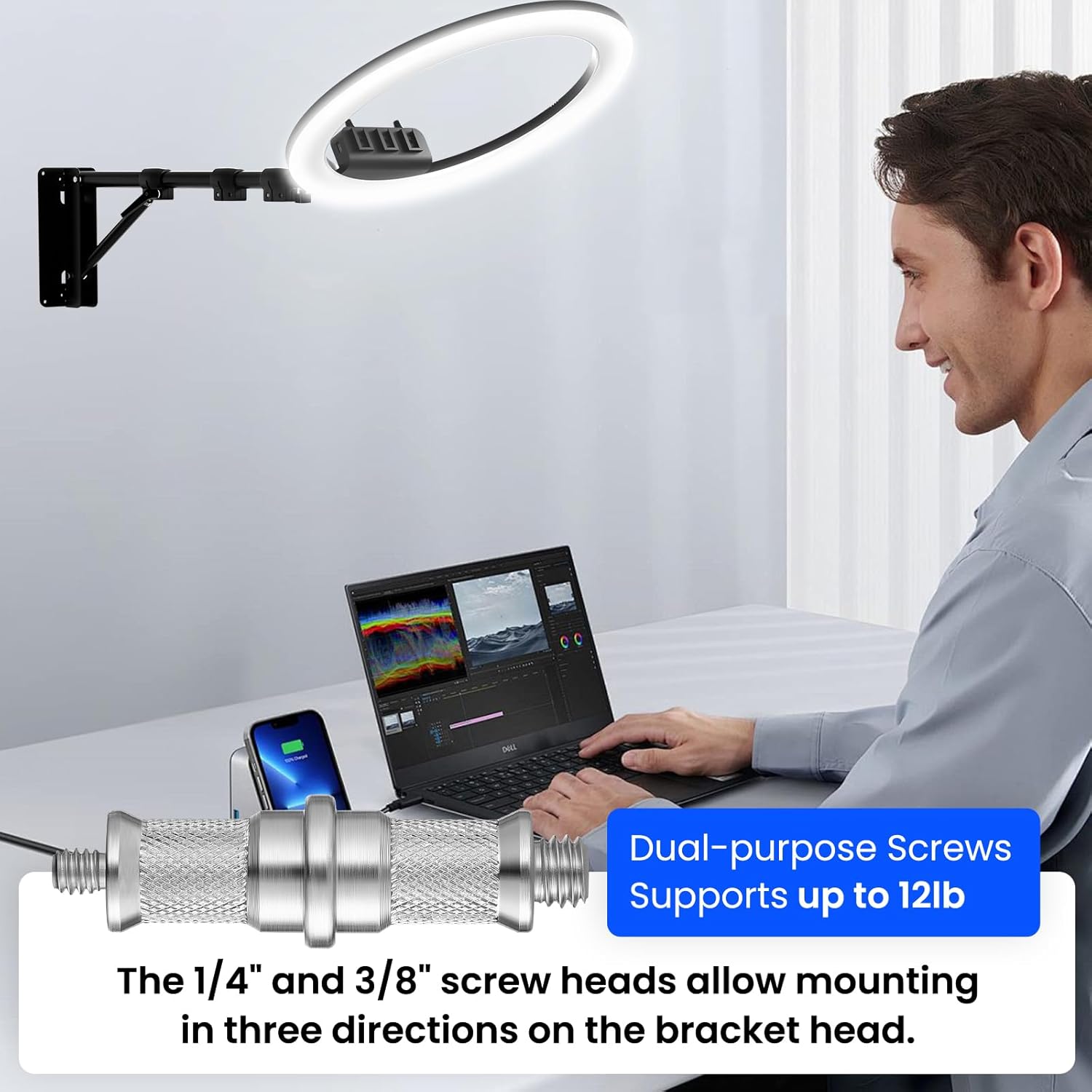 • 【Reinforced Triangular Stability】The boom arm can be installed on walls or ceilings, saving space and avoiding occupying shooting space. The ring light wall mount bracket adopts a triangular design for high stability and strong load-bearing capacity, supporting up to 12 pounds.