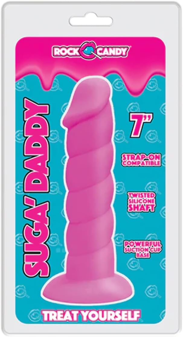 The Rock Candy Sugar' Daddy is a decadent sexual indulgence designed to satisfy your deepest cravings. The sugar' Daddy features a soft supple Twisted silicone shaft that hunger for your grip and a contoured, bulbous head designed to hit that sweet spot. Whatever your favorite flavor, craving or position the sugar' Daddy satisfies with a powerful suction cup base and is strap on compatible.