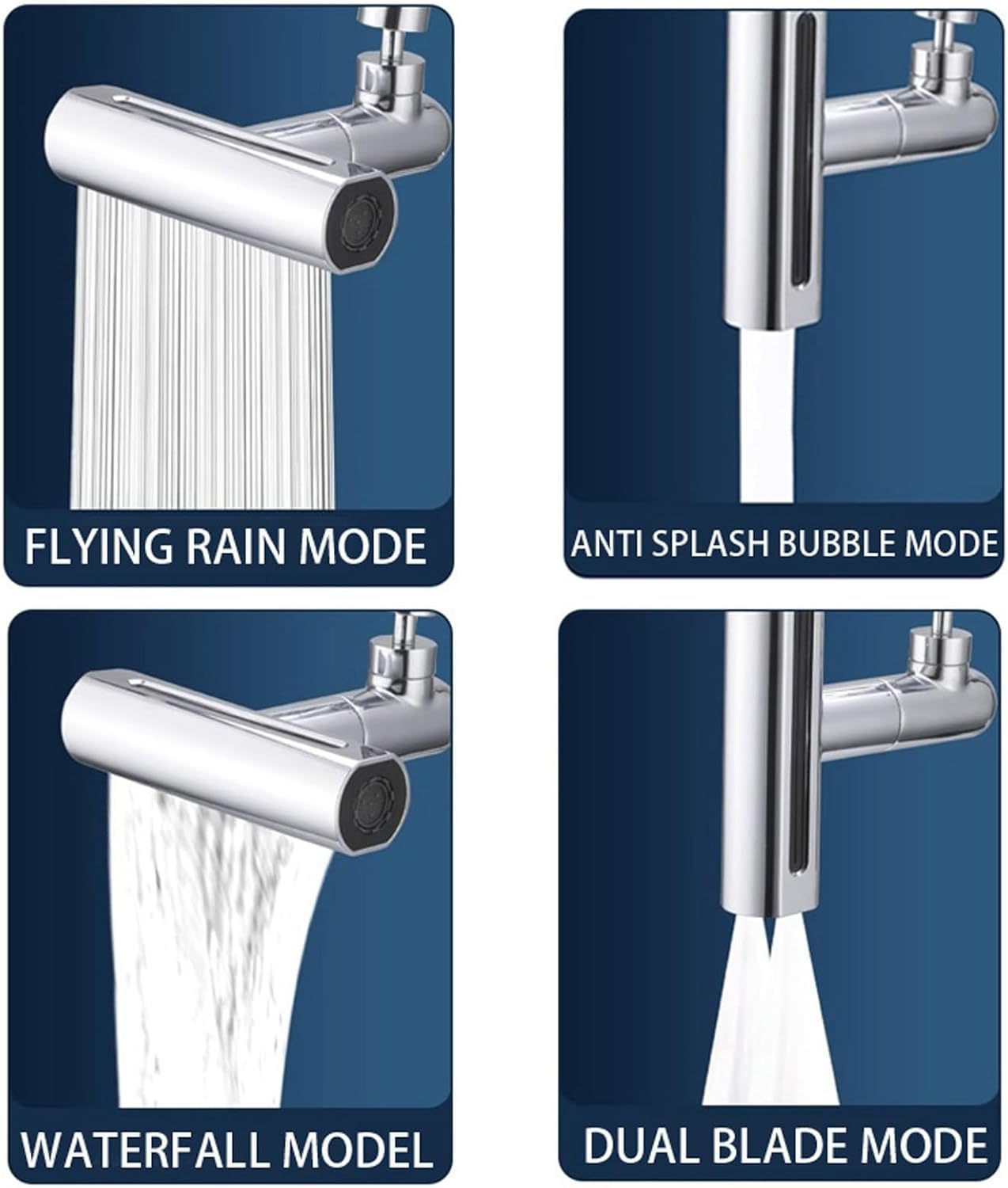 Waterfall Kitchen Faucet Extender: Whether you need a concentrated stream of water for a targeted scrub or a large area of spray to rinse delicate fruit, this versatile rotatable faucet extender has you covered.Easy Installation: The kitchen sink faucet attachment can be manually installed without any tools and takes just a few seconds to complete. Swivel faucet extender fits the kitchen, sink faucets, bathroom taps, and lavatory Faucets.Copper and ABS Material: Sink faucet extender is made of solid brass connector and arm, ABS inflator body, multilayer electroplated surface. This waterfall kitchen faucet adapter ensures durability and sturdy.Versatile Discharge Modes: Faucet extender for bathroom sink has 4 discharge modes. You can choose different modes and adjust the faucet spray mode by turning it to your liking. Easier to clean face, hair and teeth, especially for kids, the elderly and women with long hair.Universal Faucet: If your faucet is M22 male thread, you can install the faucet extender directly. If your faucet is M24 female thread, you need to install the adapter. The sink extender allow 1080° full rotation, allowing easy access to every corner of the sink, providing extra extension so you can easily hold the faucet. Specification: Item Type: Waterfall Faucet ExtenderWeight: 237g/8.36ozSize: 128 x 102 x 70mm/5.04 x 4.02 x 2.76inMaterial: Copper and ABS Package List: 1 x Waterfall Faucet Extender