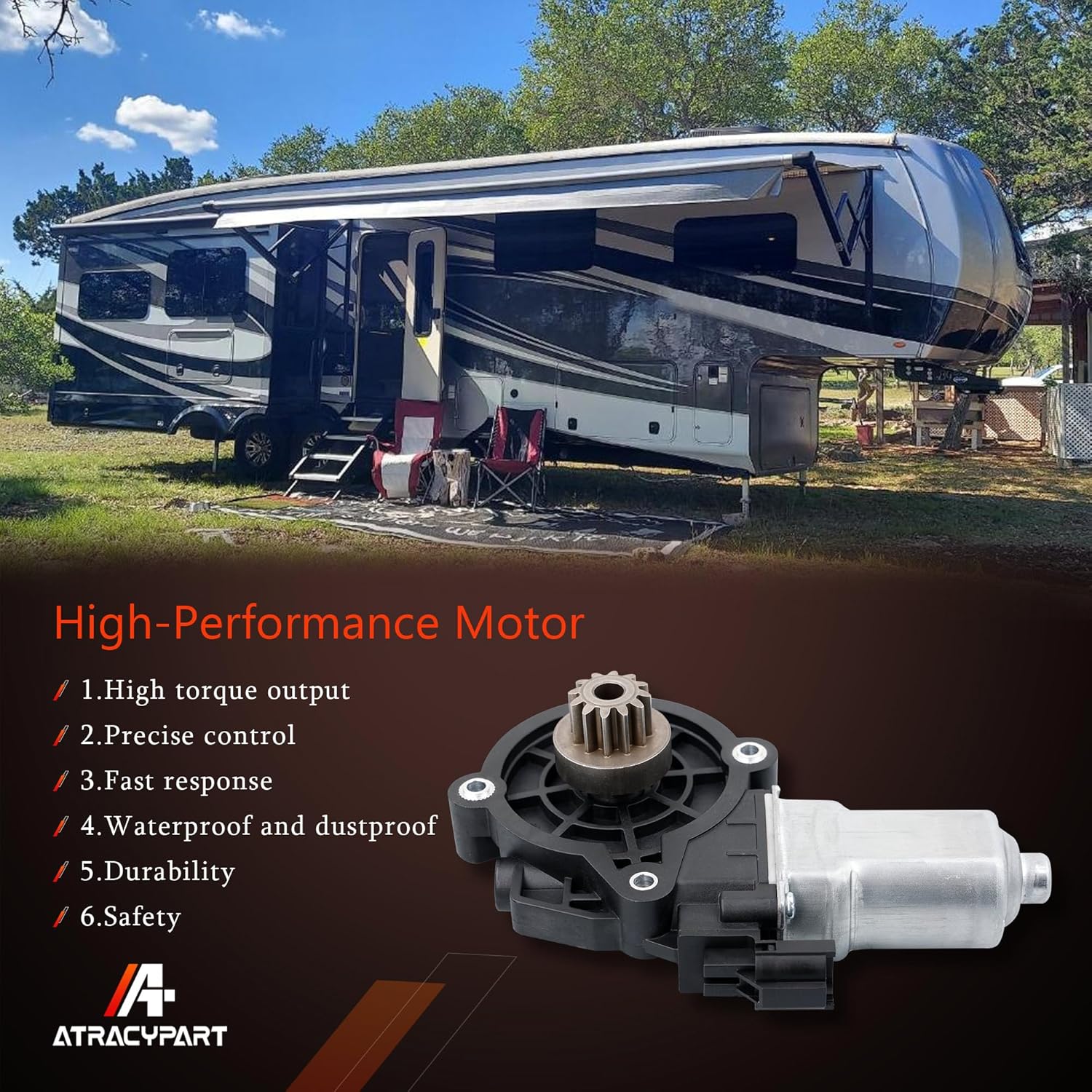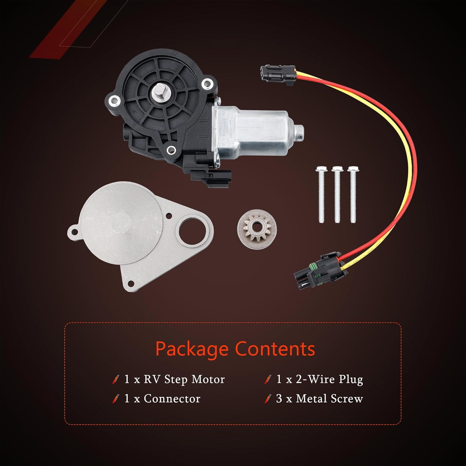 Description:The Step Motor Replacement Kit is designed to help the step automatically extend when you open your RV door and retract when you close your RV door. This replacement kit has everything you need to replace your Step Motor. The motor will automatically shut down if the step strikes an obstacle. Weatherproof wiring and connectors prevent shorts and corrosion in the system.Replacement For Lippert Series 22/ 23/ 30/ 32/ 33/ 34/ 35/ 36/ 38/ 40 Electric Entry Steps Without IMGL/ 9510 ControlOE Part Number: 379608Package Contents1 x RV Step Motor1 x Connector1 x 2-Wire Plug3 x Metal Screw
