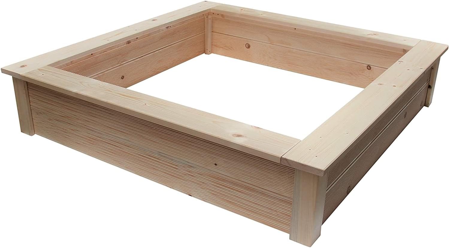 Sandpit dreams come true - handmade, robust, timeless. Kids love sand. And parents love quality they can trust. Our sandpit combines both: lovingly handmade from Germany, manufactured with over 30 years of experience - for a play device that inspires season after season. The solid spruce or fir wood (26 mm) is naturally robust and weather-resistant. Galvanised screws prevent rust and ensure lasting stability. The wraparound, rounded seat edge invites children and adults alike - perfect for sandcastles, sand cakes and outdoor hours together. The untreated wood can be designed as desired: paint, oil or impregnate. On request, we supply the sandpit with professional impregnation. ✔ Non-toxic wood - safe for children ✔ Rustproof galvanised screws ✔ Three sizes: 150 | 170 | 190 cm ✔ Assembly kit with assembly instructions (English language not guaranteed) - quick to assemble ✔ Optional with impregnation available ✔ Made in Germany - for over 30 years Note: product images are for reference. Depending on raw material availability, the side boards may have a smooth or ribbed surface.