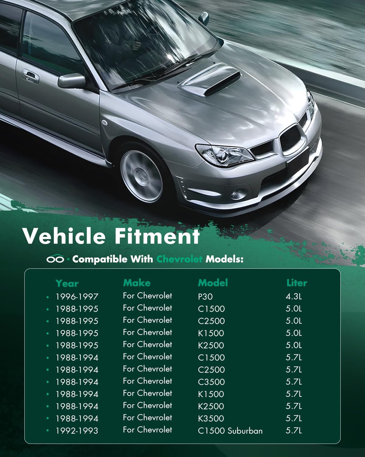• 【Vehicle compatible2】Fit for GMC for C1500 (1988-1995 5.0L// 1988-1994 5.7L), for C1500 Suburban (1992-1993 5.7L), for C2500 (1988-1995 5.0L// 1988-1994 5.7L), for C2500 Suburban (1992-1993 5.7L), for C3500 (1988-1994 5.7L), for K1500 (1988-1995 5.0L// 1988-1994 5.7L), for K1500 Suburban (1992-1993 5.7L), for K2500 (1988-1995 5.0L// 1988-1994 5.7L), for K2500 Suburban (1992-1993 5.7L), for K3500 (1988-1994 5.7L), for P3500 (1996-1997 4.3L)