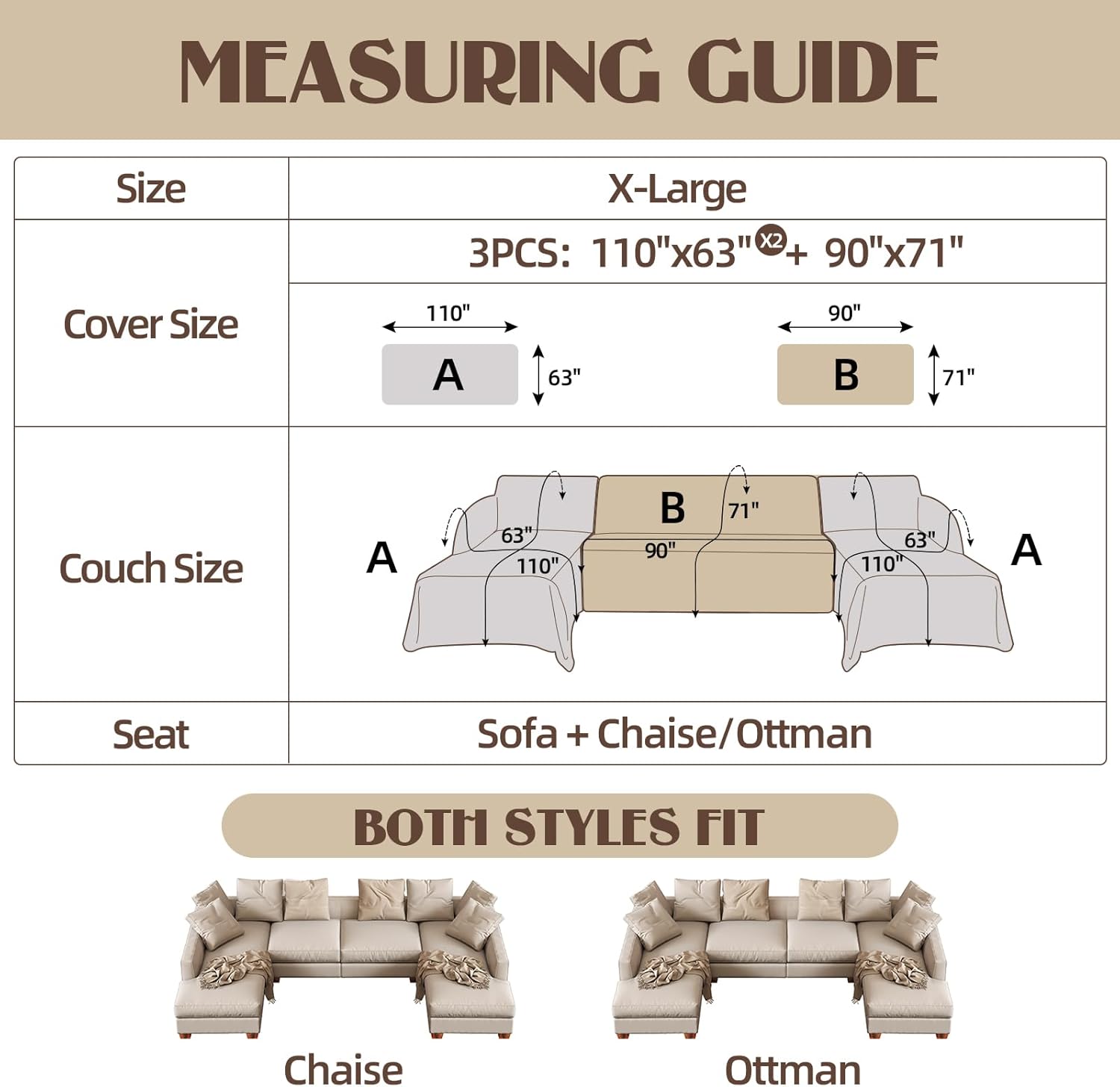 | Included Components | 110" x 63" blanket couch cover x2, 90" x 71" blanket couch cover x1 |