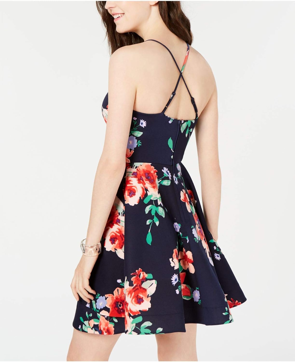 Sequin Hearts Womens Ruffled Spaghetti Strap Sweetheart Neckline Short Party Fit + Flare Dress