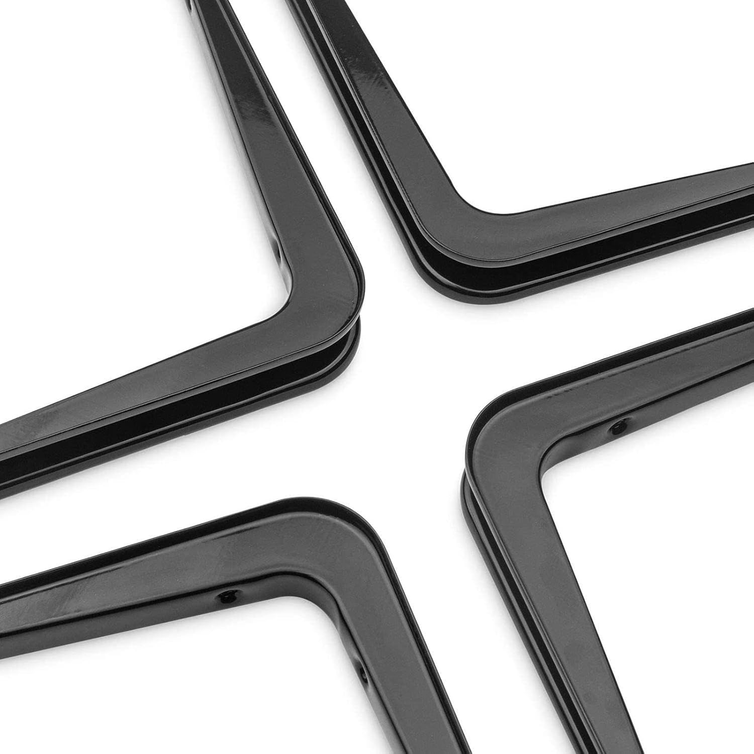 We provide 6 different sizes for your choice - you can choose the most suitable wall bracket according to your request. Guaranteed perfect 90 degree of this bracket, which won't be tilted after installing.These L brackets can match different style boards. They can be widely used in garages, kitchens, shops, bathrooms, laundry rooms and compatible with industrial farmhouse rustic style or modern style perfectly.STRONGER & DURABLEOur corner braces are made of high-quality materials with proof-rust coating. The black finish is smooth and durable and has a long service life. The metal l bracket is very beefy with nice countersunk holes.The small solid and strong corner bracket could be used for any shelf install, such as bookshelf, garage shelf, garden shelf, table and chair corner. It will good organize your items and save your space.Our L bracket is stronger, please don't look down on these small brackets, their load-bearing capacity will surprise you!Easy InstallationWhite appearance, simple and generous, beautiful and fashionable. Each load-bearing frame is equipped with complete hardware screws, which can quickly install the bracket.