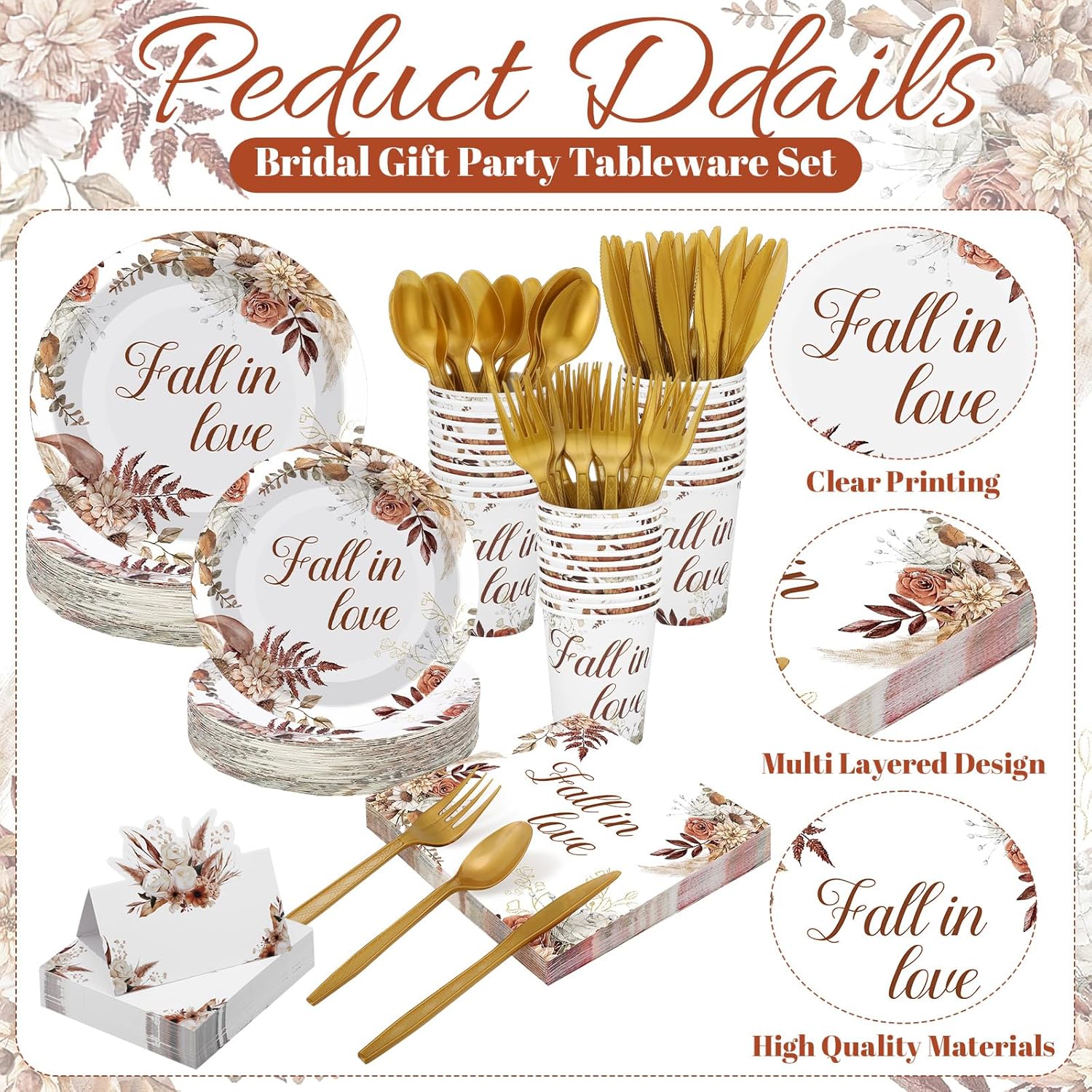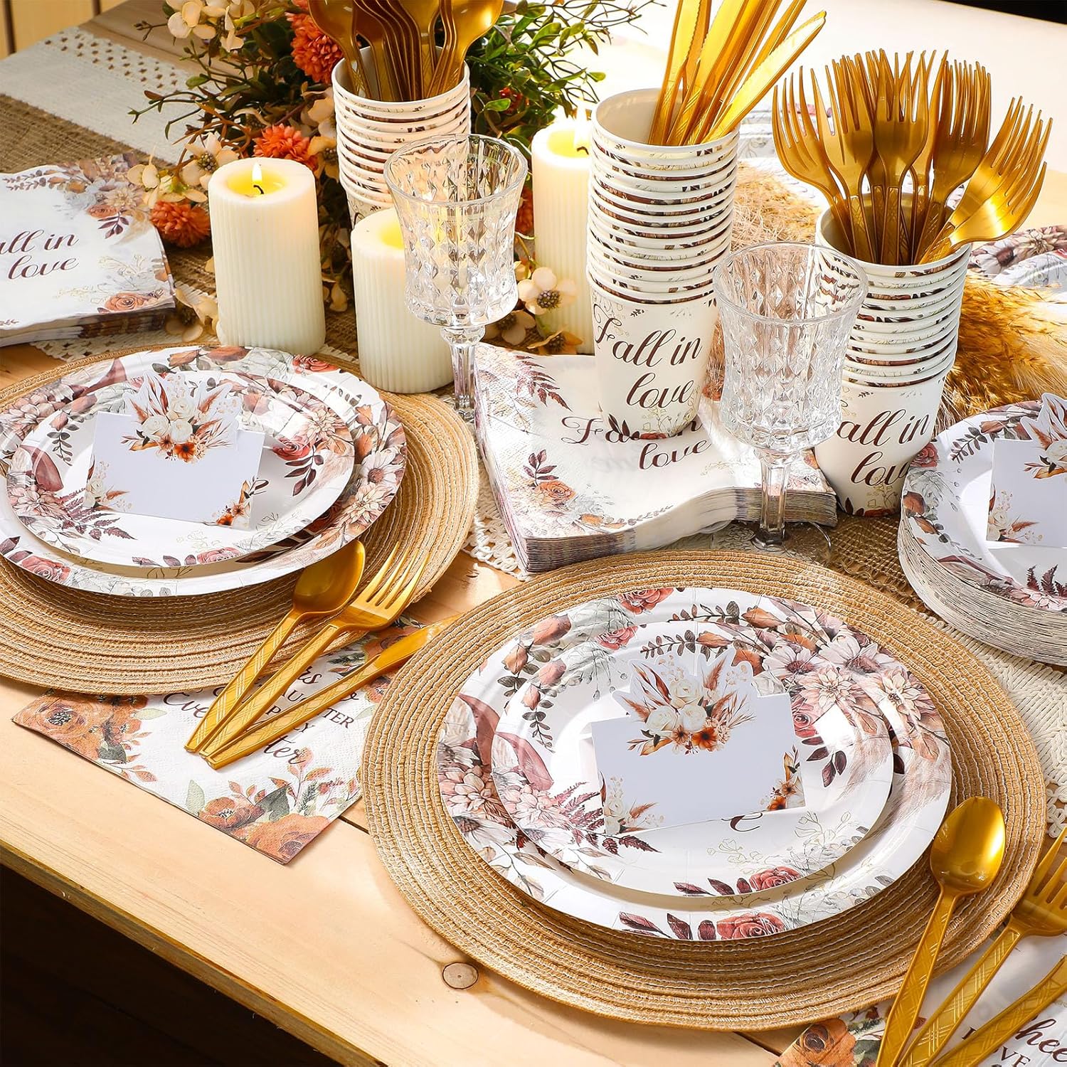 • Boho Floral Style Design: our Boho floral theme tableware set uses a Boho floral style pattern and the text Fall in Love; The exquisite design is generous and elegant, which can add a touch of elegance to any table setting and occasion, and easily fits the theme of your event