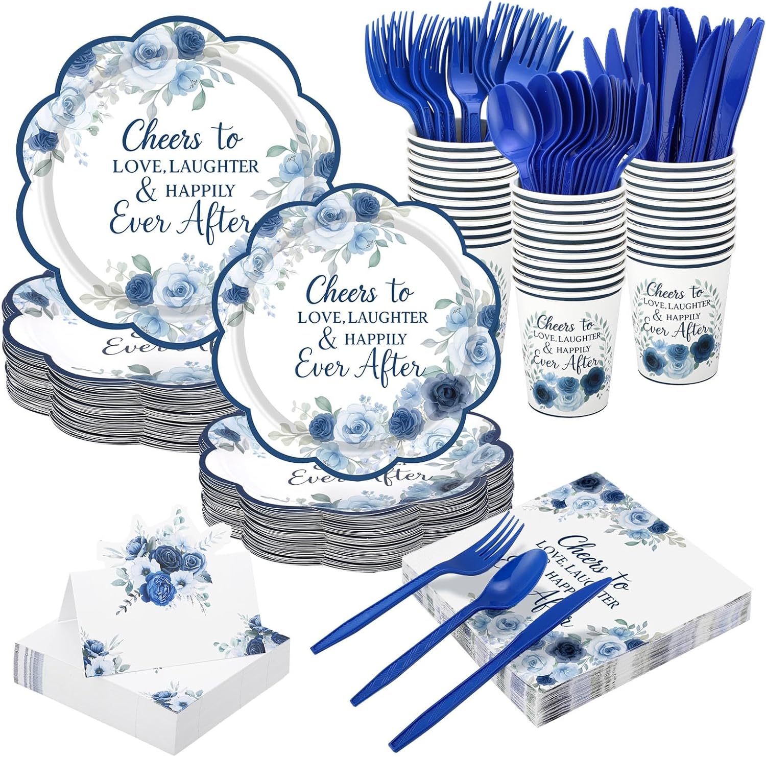 • Disposable Tableware Set: the bridal shower tableware set includes 50 disposable paper plates, 50 disposable dessert plates, 50 disposable cups, 50 napkins, 50 knives, 50 forks, 50 spoons and 60 place cards, a total of 410 pieces, which can serve 50 guests at the same time; Meet your needs for daily dining, bridal showers and weddings