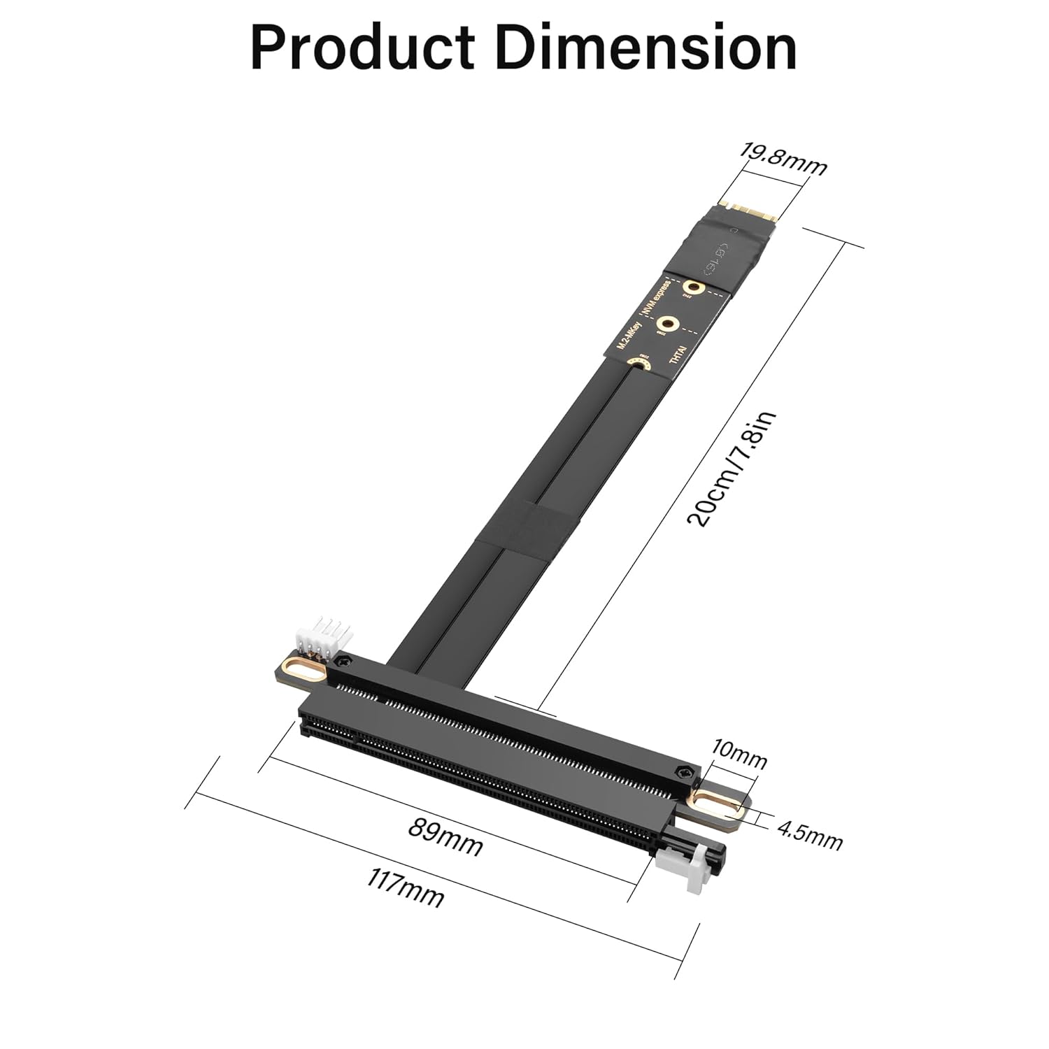 Features: 1. Backwards compatible with PCIe 2.0/1.0. 2. 1 ounce thickened copper wire and gold plated fingers, wear-resistant, enhances signal transmission stability. 3. TPE cable body, soft and durable. 4. Sectional arrangement of cable body allows for better routing options and better airflow. Note: 1. To avoid damage to the device, ensure that the installation direction is correct. 2. During disassembly, please hold the PCB hardware part instead of pulling the wire body to avoid damaging the magnetic core. 3. Does not support hot-plugging (when installing this product, please make sure the motherboard is powered off first). Package includes: 1 * M.2 NGFF NVMe Key M to PCIe 3.0 X16 Extender Cable 1 * SATA Power Cord