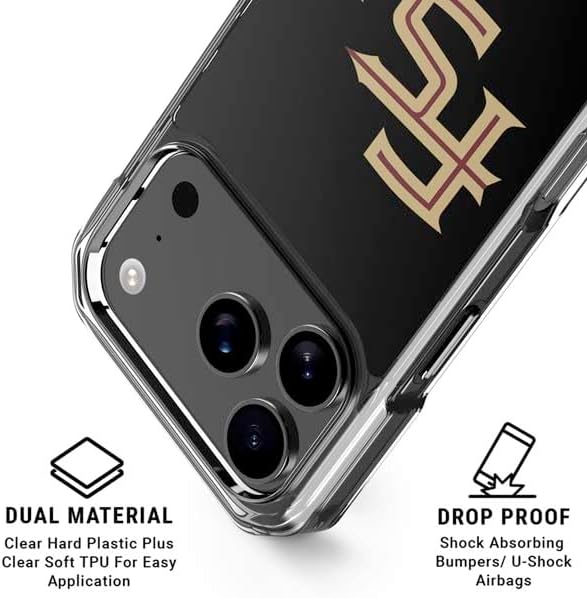 The Florida State FSU Seminoles Black Case compatible with MagSafe iPhone 17 Pro Max comes equipped with shock-absorbing TPU AirPocket cushioned corner bumpers, ensuring your device remains safe from accidental drops. Offering a 6-foot impact drop protection, this Florida State Case compatible with MagSafe iPhone 17 Pro Max also features a raised front bezel, delivering extra safeguarding against undesired scratches and scuffs for your phone screen.