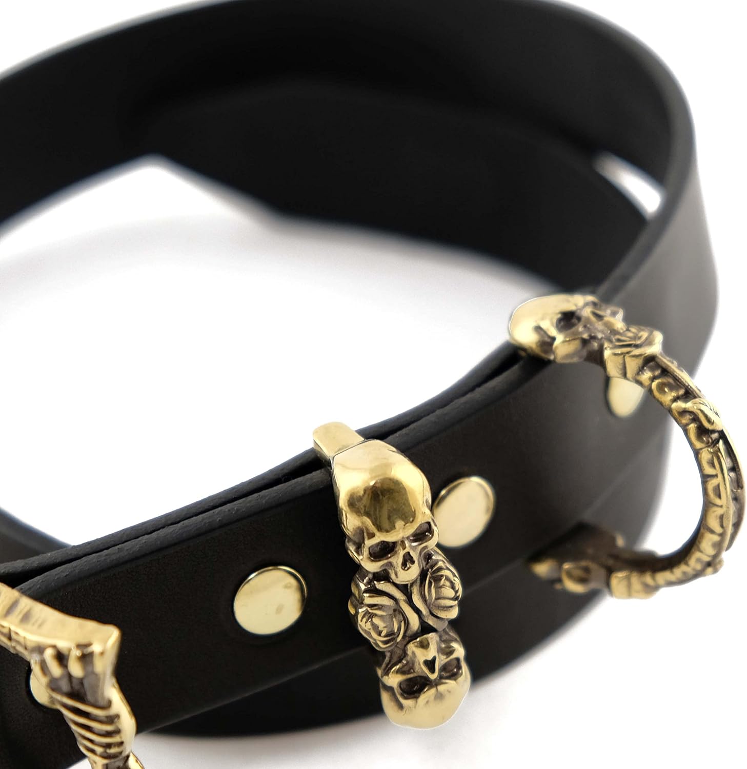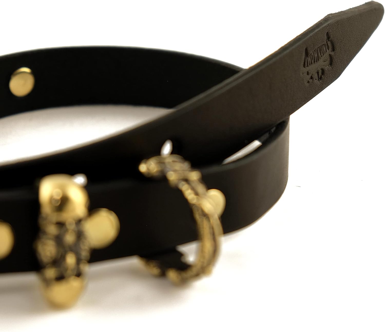 Dog collar with solid brass hardware "Skulls and Roses" This time we are happy to present our new product, which is completely modeled and handmade - a product for our best friends - dogs. We have gathered all the best in this dog collar to make you and your pet feel great. Original designed buckles & D-ring – we do not use ordinary hardware, we mold it to our own unique design. Solid Brass Buckle & D-ring - Buckles are cast from brass. After casting, each buckle is processed manually. After processing, the buckle is covered with a patina and polished one more time. Personalized collar - of course, we have thought about your pet's personal data, we will gladly engrave two lines of the necessary information on a brass nametag. The custom engraved nameplate is Solid Brass and is riveted to the collar. Solid brass dog necklace – You can choose for your pet something special, which will distinguish it from other pets. See options. 100% Top Grain Leather Collar | Best quality - The collar is made of a solid piece of calfskin leather, which means it will serve you for a long time. The thickness of the collar is 0.12-0.14” (3-3.5 mm). For this moment we propose in black color. Collars sizes. Important. Instruction on how to make correct measurements see below in Product specifications or at photo instruction. Choose the required length from the suggested options.