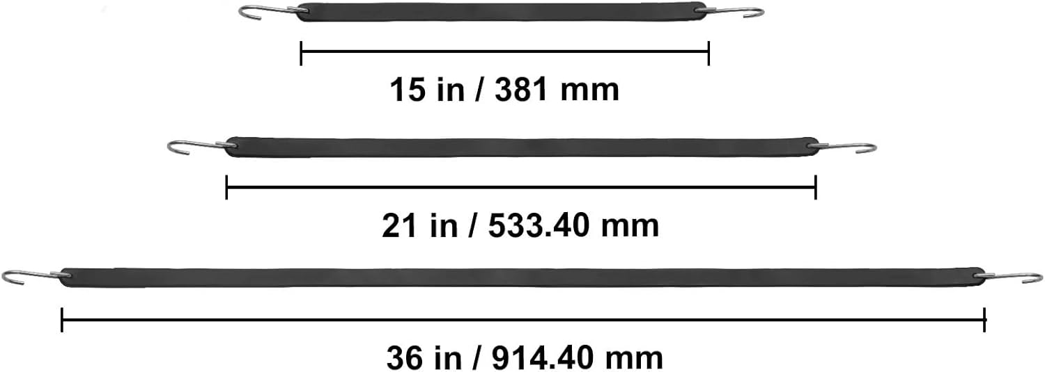 Item Weight : 1.9Quantity 1 : 36in x 4pcsQuantity 2 : 21in x 10pcsQuantity 3 : 15in x 6pcsMaterial : RubberHook Type : S-HookHook Material : SteelType : Stretch Elastic Bungee Cords20pcs Bungee Cords With Hooks Heavy DutyNotes: 1. There may be slight size deviations due to manual measurement, different measuring methods and tools. 2. The picture may not reflect the actual color of the item because of different photographing light, angle and display monitor.