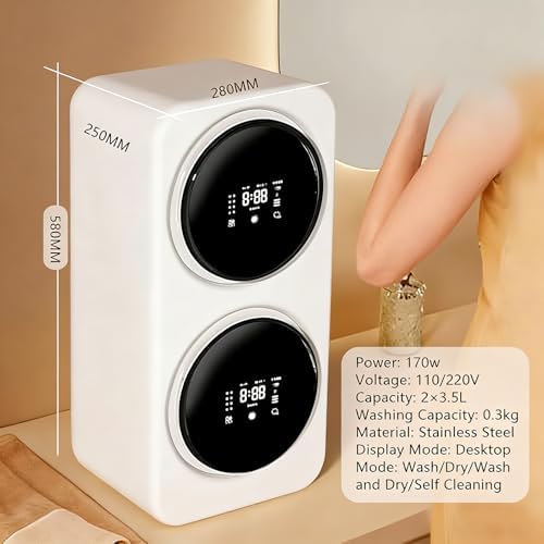 Tired of hand-washing delicate underwear or worrying about damage from traditional machines? Welcome to a new era of laundry care with our 2-in-1 Twin-Drum Washer & Dryer, designed specifically for delicate fabrics. Whether it’s lace lingerie, silk pajamas, or activewear, this innovative appliance cleans thoroughly while maintaining the softness and integrity of your garments. Our washer and dryer combo features smart drying technology that ensures your sensitive clothes remain fresh and perfectly dry, even on rainy days. With a user-friendly interface, you can easily select from basic programs such as Quick Wash, Normal Wash, Deep Wash, and Soak and Wash—all at the touch of a button. Plus, with a low noise level of just 45 decibels during drying, you can enjoy a peaceful environment while your laundry is taken care of. This compact appliance is perfect for small spaces, whether you choose to place it on your countertop or mount it on the wall. The stainless steel inner drum guarantees durability and efficient cleaning, while the rated washing capacity of 0.6KG and drying power of 380W offer powerful performance in a convenient size. Upgrade your laundry routine and give your delicate garments the care they deserve. Make laundry day a breeze—add our Mini Twin Tub Washing Machine to your cart today and experience the perfect balance of efficiency and gentleness in your laundry care!