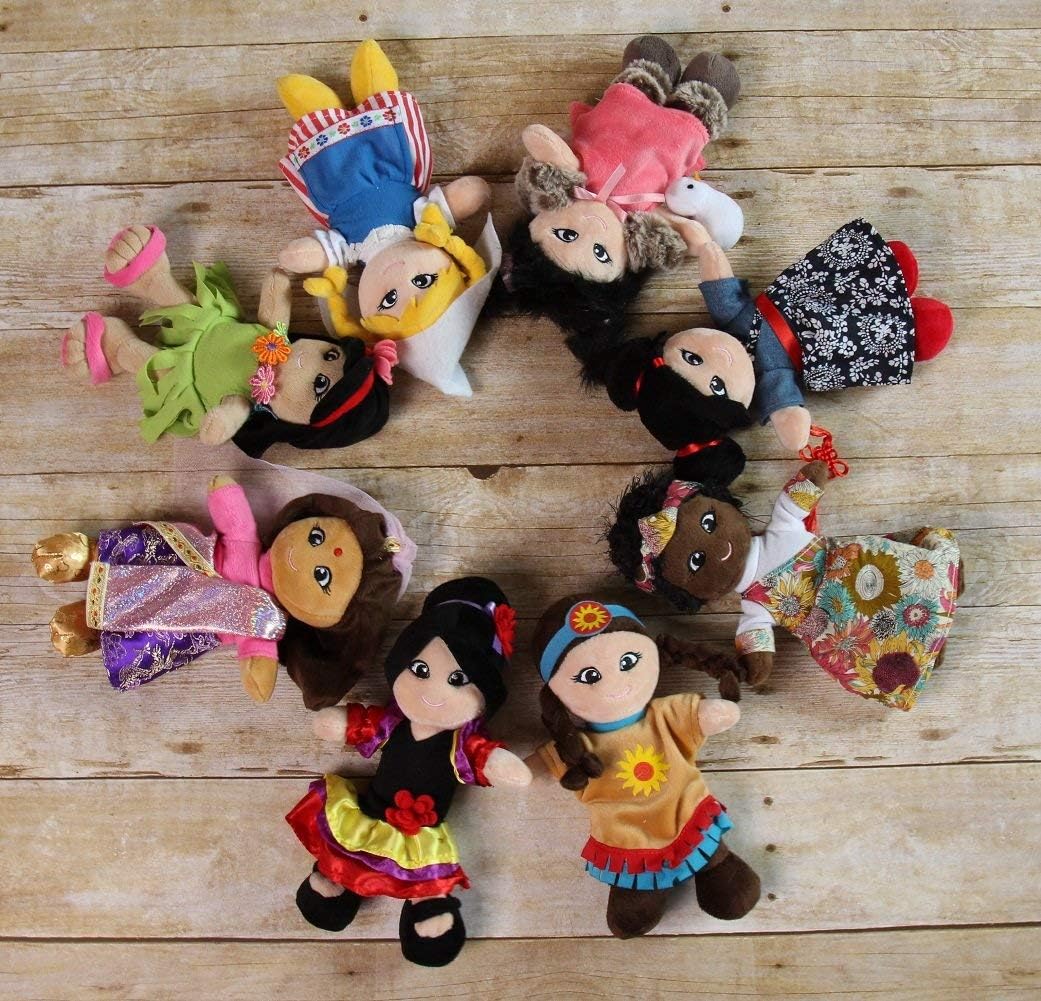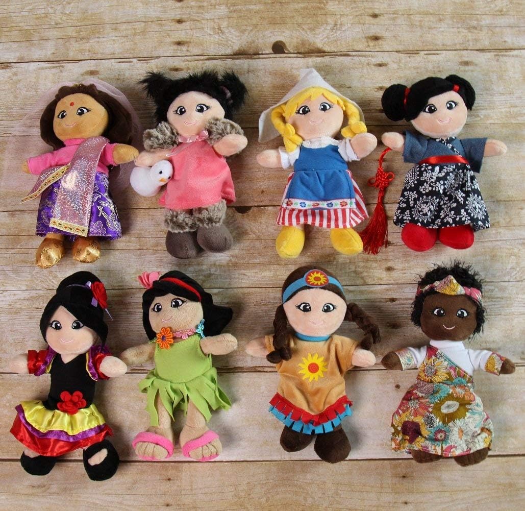 Our dolls from Around the World are perfect for your little adventurer. Each little dolly will bring the charm and beauty of the culture which she represents. Asian doll is just one of eight collector styles: Latin, Polynesian, American Indian, African, Eskimo, Asian, Indian, Native American and Dutch. Make learning about different cultures more fun for children by introducing these adorable dolls. Polyester plush. Spot clean. Imported. Includes one Asian doll. Additional Around the World Dolls each sold separately. 8" Dolls Approximate measurements: Head to toe: 9", Across arm: 6", Thickness: 1.5".