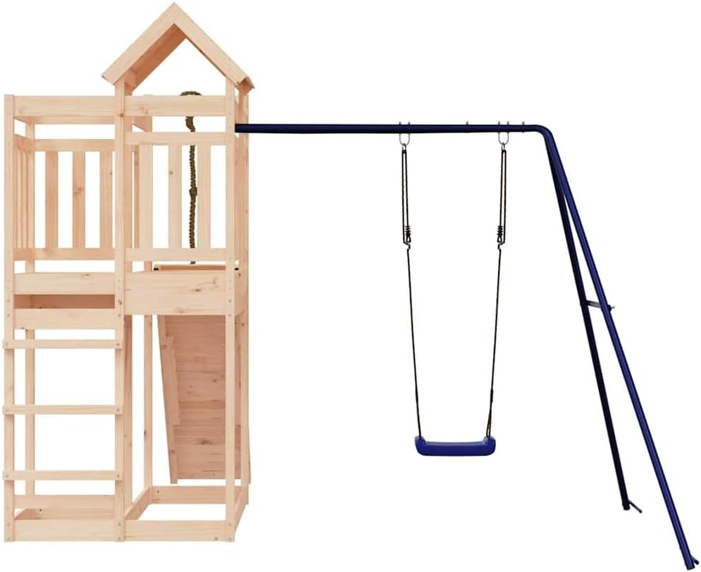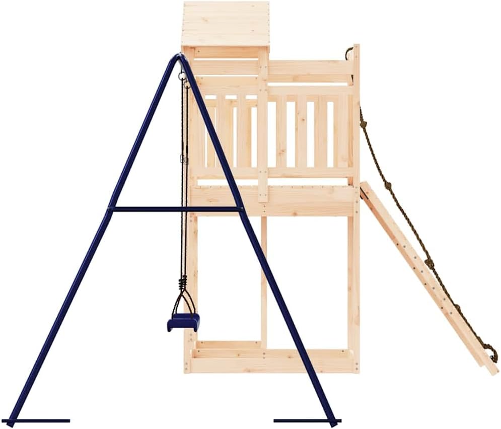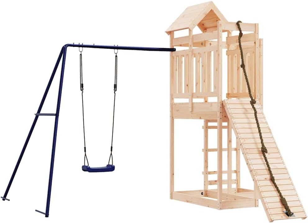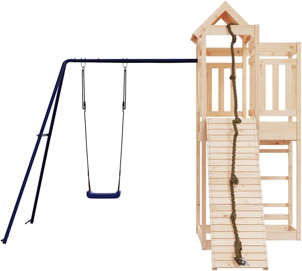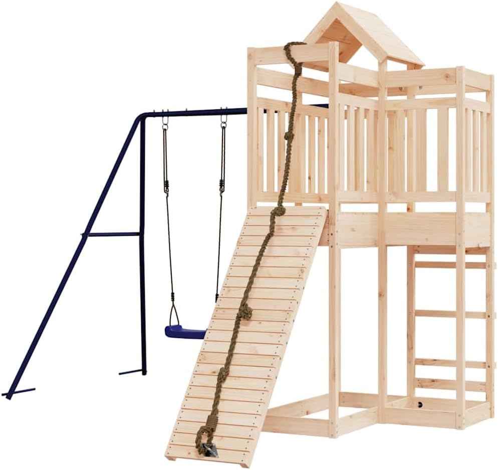 This Rustic Outdoor Pine Wood Playset is a fab addition to any backyard, perfect for kids aged 3 to 8 years. Made from solid pine wood, it has a natural untreated finish that shows off its rustic charm, making it a great spot for little ones to explore and have fun.