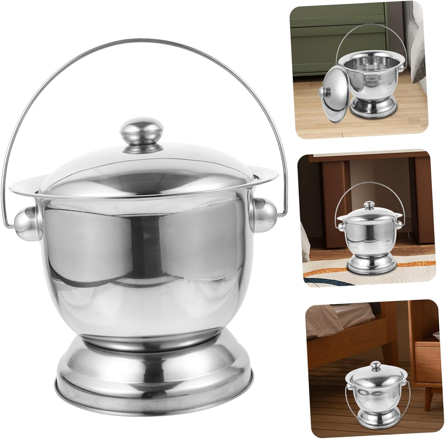Package List 1 x Chamber Pot 1 x Lid Characteristics -Size:24.50X24.00X24.00cm/9.63X9.43X9.43in hospital urinal for men -Color:Silver bedroom urinal -Material:Stainless steel urine bucket metal -Sealed with a lid to isolate , it is easy to use travel and easy to move bedside toilet for senior. -Made of wear- stainless steel material, and , smooth surface and easy to wash emergency urinal for men. -Lightweight, compact, occupy space, and the Chamber Pot is convenient to carry around metal urinal spittoon. -The edges are smooth and round, no burr, no injury to skin, and easy to clean metal potty pot. -This convenient and reusable urinal is suitable for disabled people or elderly, perfect for home or hospital portable urinal.Goods Descriptionportable urinal If you are looking convenient and Spittoon, then you can come to see this Spittoon, made of stainless steel material, can ensure its durability and practicability.Patient Care Accessories Suitable for home, car, travel or outdoor use.home chamber pot This Chamber Pot is one of the for you, which is a necessary accessory for elderly, pregnant women or disabled people