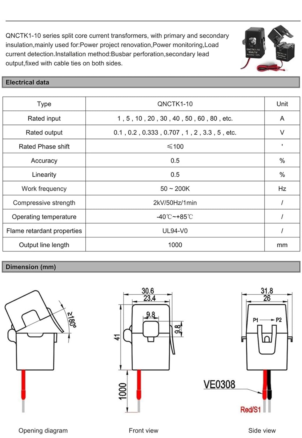 Sensor Blocks==========High-concerned chemical : Noneis_customized : YesRated input : 1A 5A 10A ~150ARated output : 0.333V , 0.707V , 1V , 3.3V , 5VAccuracy : 0.5%Linearity : 0.5%Work frequency : 50 ~ 200KHzCompressive strength : 2kV/50Hz/1minOperating temperature : -40~+85