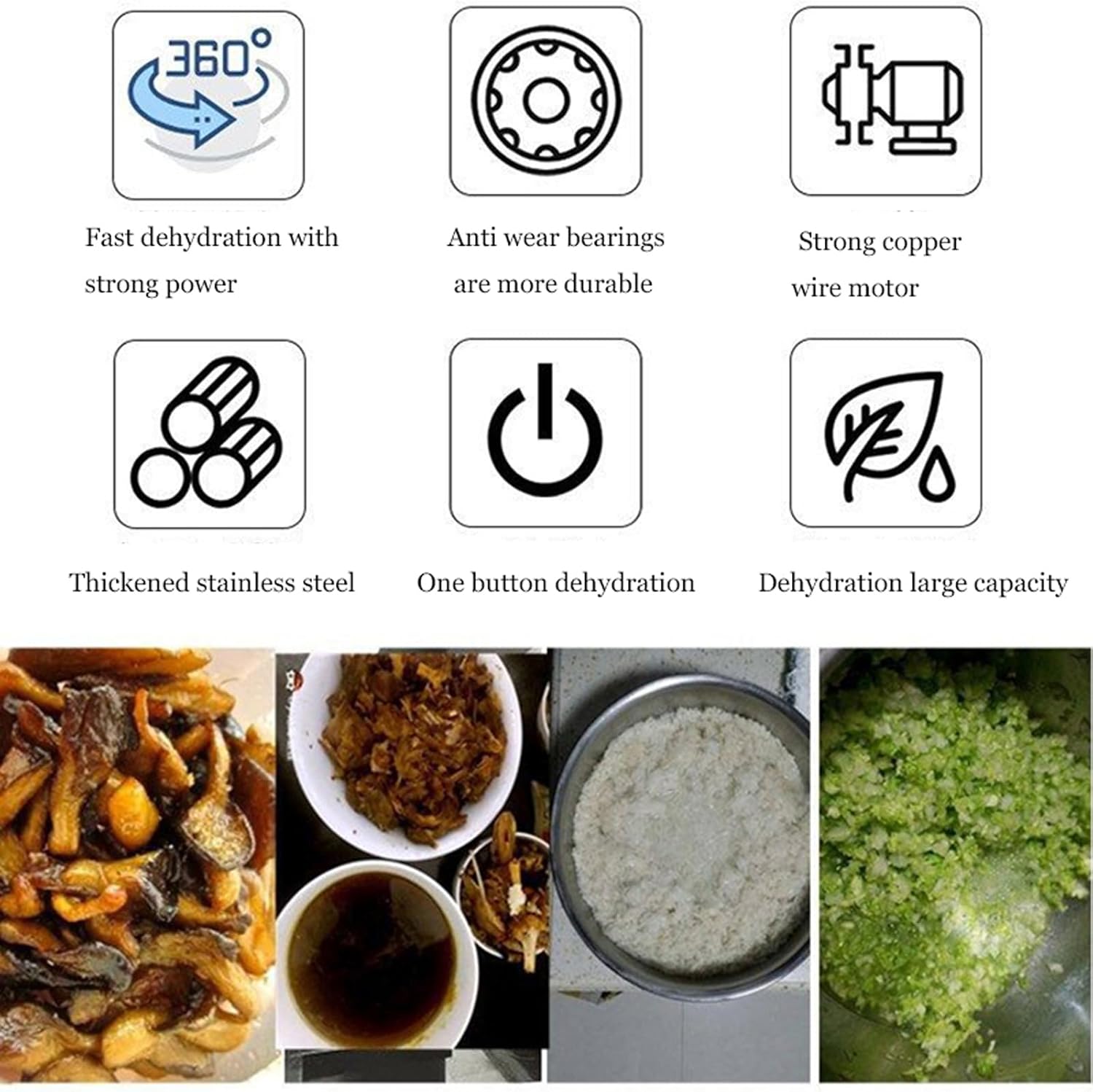 Name: Food dehydrator machine Power: 180W Size: 36*36*58cm Voltage:110V Efficiency : 2-4kg / tim Weight: 25KG After packaging: 28KG Function: clean vegetables, dry vegetables, dehydrated Features: One-click food dehydration, no need to fix (NING)