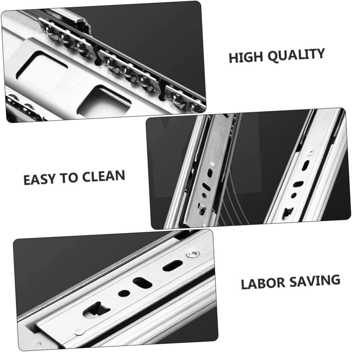 Package List 1 x Pair of 2pcs Drawer Slide Features -Color:Silver -Product Info:Rebound track -Material:Stainless steel -Self closing drawer glides. for new construction, remodeling and replacement projects Drawer Road Guide. -Full extension, 3-section stretch design to make full use of drawer space Three-section Drawer Track. -Rust resistant for your lifetime use, heavy-duty and durable, load-bearing Sliding Chute. - soft-close function, continuous bearings ensure smooth and quiet performance. Buffer Damping Slide Rail -Side mount drawer slides. High grade stainless steel material made. Goods InformationDrawer Rail For applications such as filing cabinets, desk pedestals and general storage drawers.Closet Extension Sliding Rail Enjoy opening and closing the drawers silently.Buffer Damping Slide Rail soft-close function make the drawers closed without slamming shut.Steel Ball Slide Rail This full extension drawer slides can bear heavy weights and feature unique smoothly mute effect.Three-section Drawer Track The drawer slides can be rear mounted with the brackets on the framed drawers