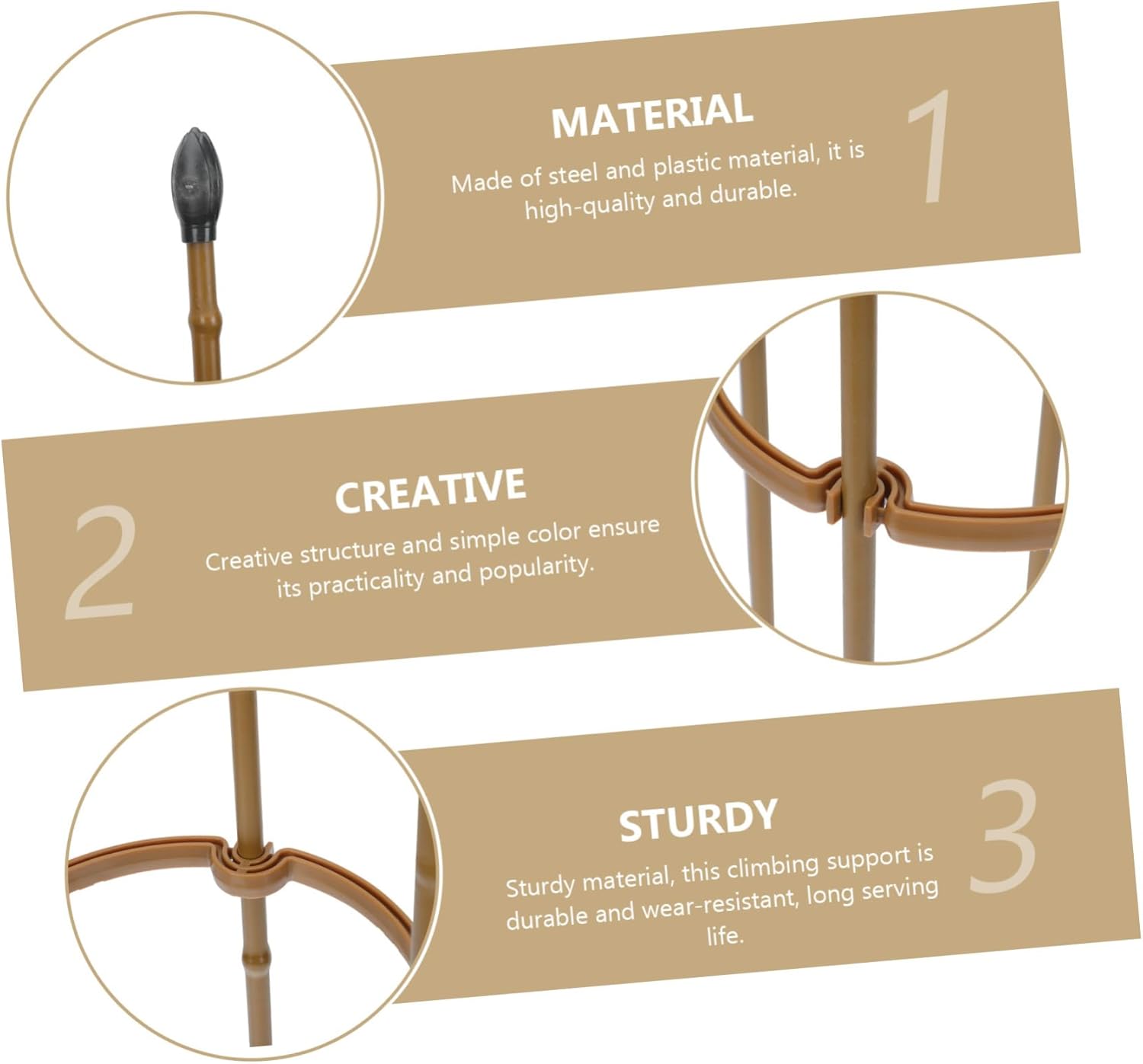 Package List 1 x Set of Flower Climbing Frame Characteristics - Material: Steel, plastic Flower Climbing Frame. - Color: Khaki Climbing Plant Frame. - Size: Approx. 60.00X15.00X0.80cm/23.58X5.89X0.31in Garden Flower Support. - Simple in structure, very easy to install, save you much time and labor Flower Support. - It will provide your plants a and beneficial growing environment Rattan Frame. - The simulation flower climbing frame is decorative and add fun to your garden Garden Plant Support. Simulaiton Rattan Frame - material and fine craftsmanship, and sturdy for a long time Flower Pot Bracket. - Suitable for all kinds of climbing plants, such as wisteria, honeysuckle, creeper, rose, etc Flower Climbing Trellis.Goods InformationSteel Flower is a great support many vines of your flowers and plants.Plant Climbing Trellis It will also bring a new look to your garden.Gardening Supplies You deserve to have one.Garden Supplies This item is a plant climbing rack, which is made of plastic and steel material