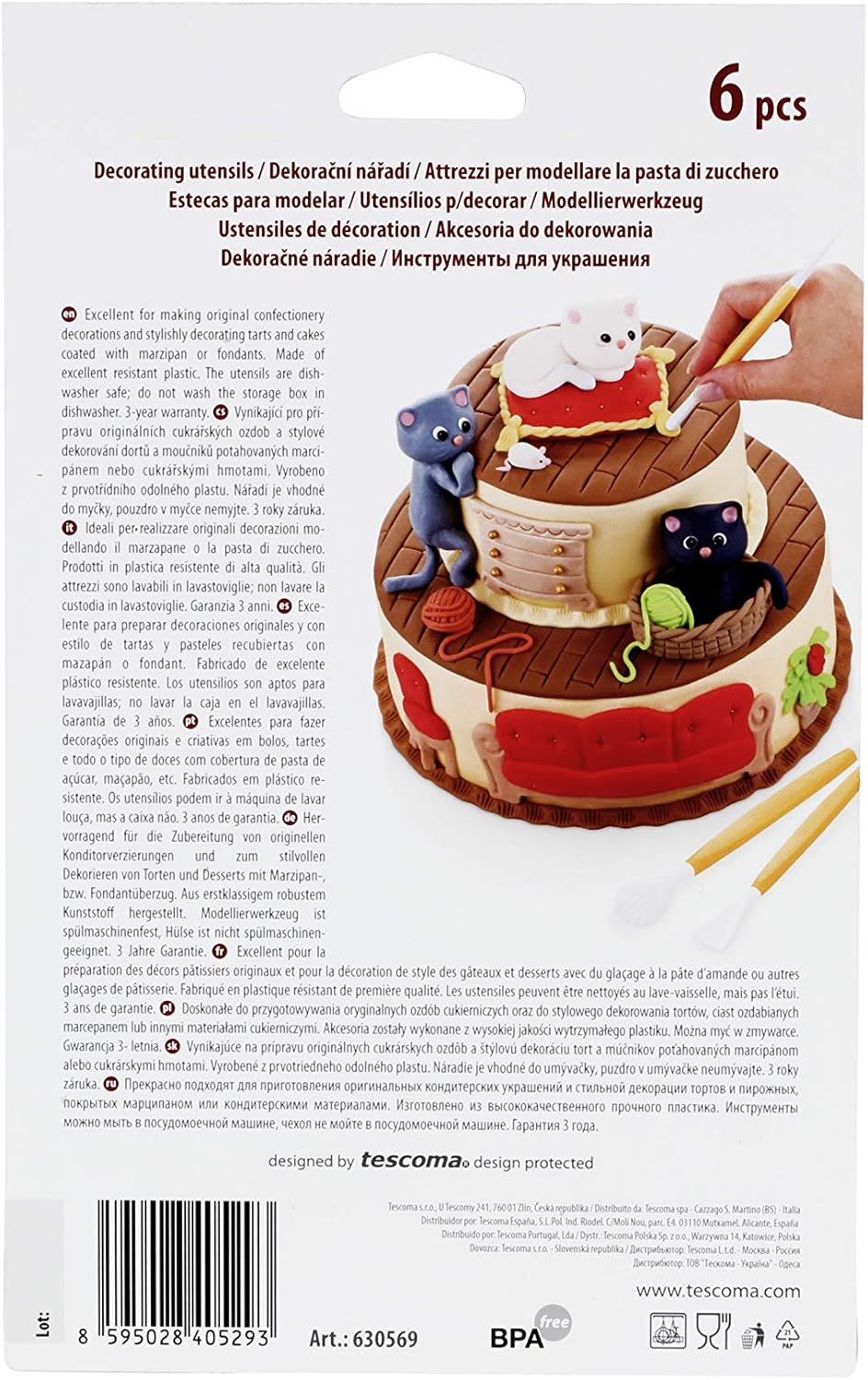 Excellent for making original confectionery decorations and stylishly decorating tarts and cakes coated with marzipan or fondants. Made of first-class resistant plastic. The utensils are dishwasher safe; do not wash the storage box in dishwasher.