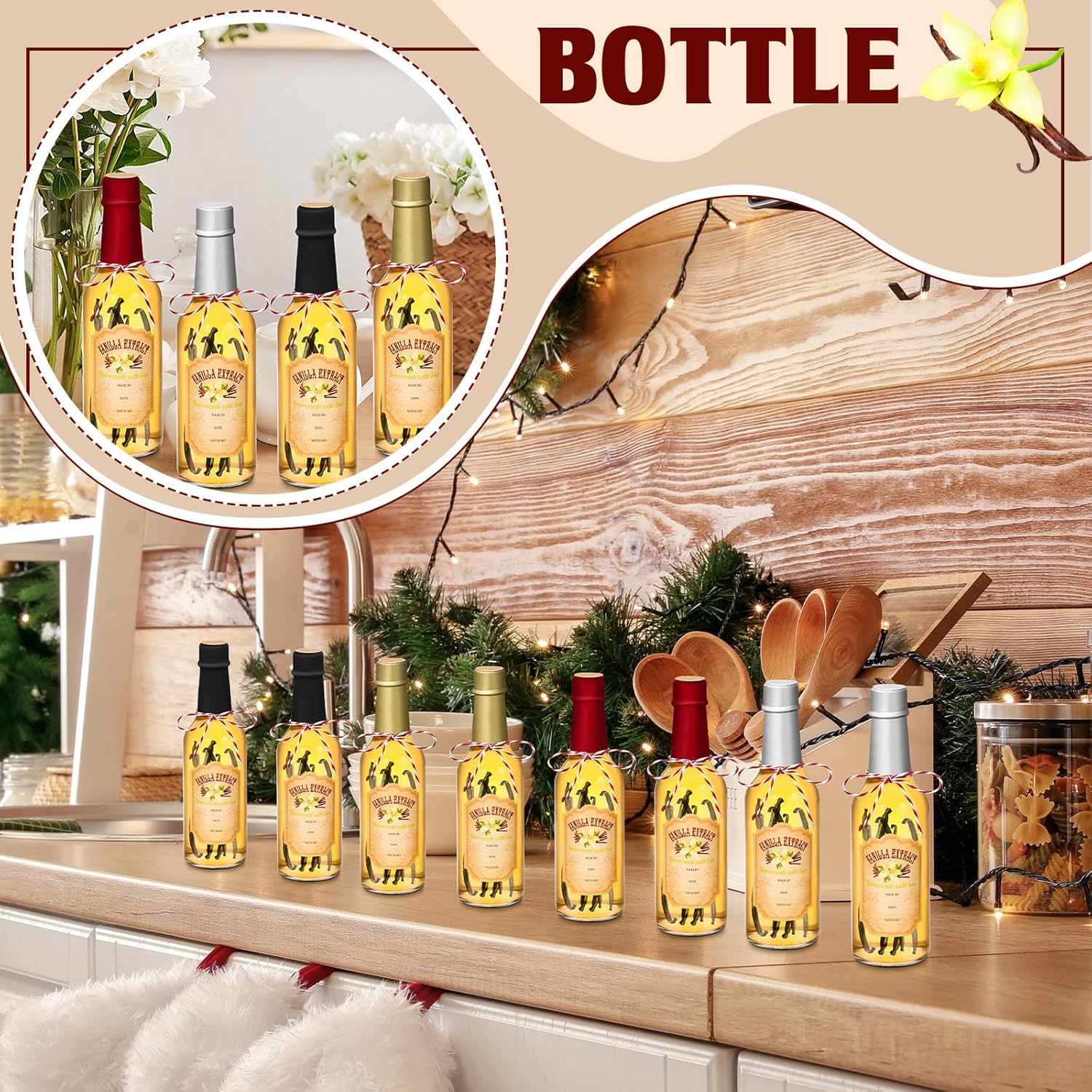• Comprehensive Bottle Collection: dive into our 16 piece clear bottles for liquor, with an impressive capacity of 5 oz each; Boasting PVC shrink capsules, these vanilla extract bottles come with vanilla essence stickers to ensure long term usability