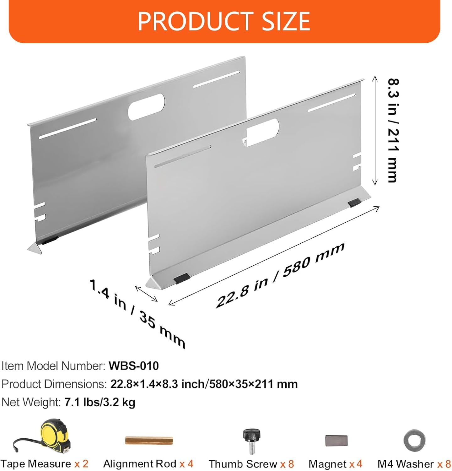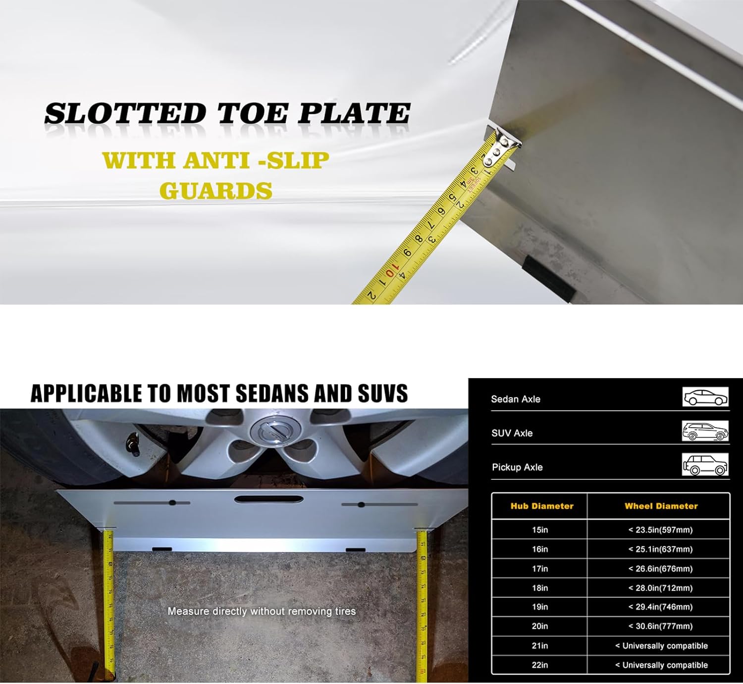 Toe Alignment Tool Plates Stainless Wheel Alignment Tool with Tape Measure Toe Plates for Car SUV Portable Repair Tools Features : Stainless steel wheel alignment tool with compatibility for car , trucks , SUVs , UTVs , and ATVs , featuring double tape measure and grooves for secure measurement Precisions engineered base with anti slip rubber and slots stabilizes measurements , while construction ensures durability for repeated wheel alignment adjustments Ideal for car enthusiasts , professional mechanics , and vehicle owners requiring accurate toe in / toe out calibration across 15-22in wheel in garages or workshops Enables wheel alignment tasks on uneven surfaces or tight space , suitable for maintenance on sedans , pickup trucks , and SUVs with hub size Wheel alignment tool set adapts various tire diameters across multiple vehicles , combining measurement accuracy with industrial component for reliability in harsh automotive Specifications : Component : Stainless steel Size : about 580x35x211mm / 22.8x1.4x8.3inch Package Includes : 2pcs Toe Alignment Tool Plates 2pcs Tape Measure 4pcs Alignment Rod 8pcs Thumb Screw 4pcs Magnets 8pcs Washer Note : Please allow 1-2cm errors due to manual measurement Due to difference between different monitors , the picture may not reflect the item actual color