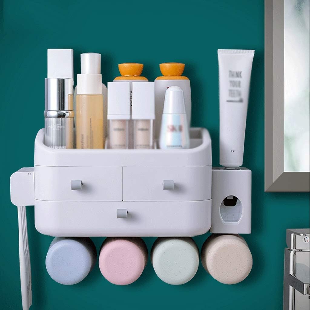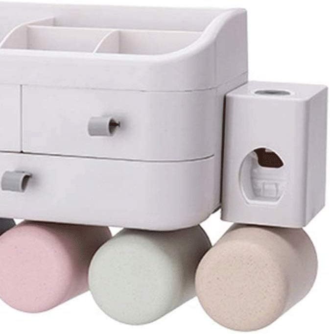 Size: 4 cupsfeature:Toothbrush holders come in a variety of sizes to meet the needs of different familiesLarge capacity and multi-function toothbrush holder setAll types of storage compartments can be sorted, stored freely, cleaned and stored togetherThey are also equipped with a mobile phone holder to meet the needs of mobile phones.Toothbrush holder is a wall-mounted toothbrush holder and toothpaste automatic squeezerIt is easy to install, detachable, easy to clean, stable and safeSpecial hollow design and inverted cup, not easy to accumulate water, no dirt, can leak quickly, clean and hygienicThis toothbrush holder is made of ABS materialThe material is pressure resistant, resistant to high temperatures and has no odorSize: 25.7x15x14 cmThis toothbrush holder for bathroom is detachable, its space was divided into 3 compartments by the divider,the divider and bottom all can be easily pulled out to allow full access to the interior,let cleaning more thoroughly