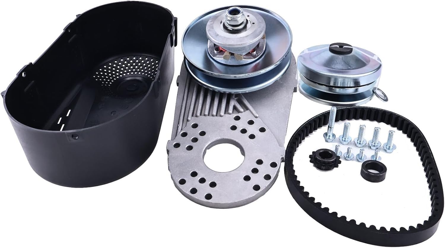 Product Name: Torque Converter Kit Application Models: Compatible with Go Kart Cart 40 Series Clutch Pulley Driver Driven 8-18 HP Engines Compatible with All 8HP - 18HP engines with a 1" straight crankshaft with 1/4" keyway Includes: Driver Clutch, Driven Clutch, Belt, Jackshaft