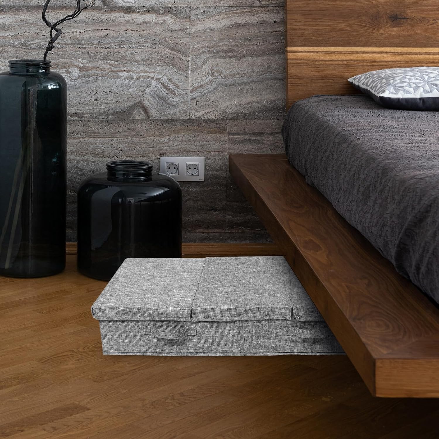 Package Include 1 x Organizer Features -Product Info:Under-bed storage box -Size:81.00X41.00X15.00cm/31.83X16.11X5.89in -Material:Imitation linen, fabric -Color:Grey - When not in use, the storage bag can be folded for easy to storage, which is space-saving bedding organizer storage. - The storage bin is mainly suitable for blankets, quilts, pillows, sweaters and other seasonal clothes underbed storage organizer. - It can be easy and convenient for you to carry or grab the handles on the bag and pull it out storage bins with lids. - The foldable design allows for easy to storage and portability, making it convenient to move and store the storage box when not in use underbed storage. - Owning the strong wear and break resistance ability, the under bed storage bag is very practical storage containers under bed.Goods DescriptionUnder Bed Storage Organizer Reasonable design and good craftsmanship make it provide you with a .storage containers This under bed storage bag is made of imitation linen, fabric material for and use.bedding storage containers A great storage bag for travel, moving house or home storage using
