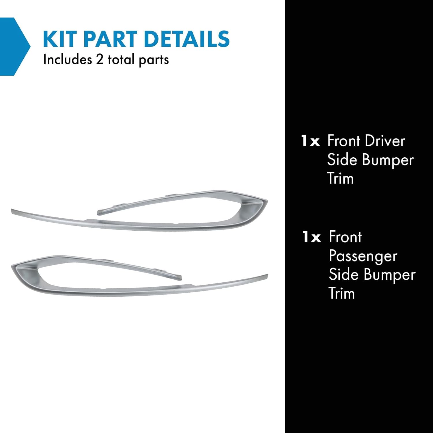 | Included Components | 1 Front Driver Side Bumper Trim, 1 Front Passenger Side Bumper Trim |