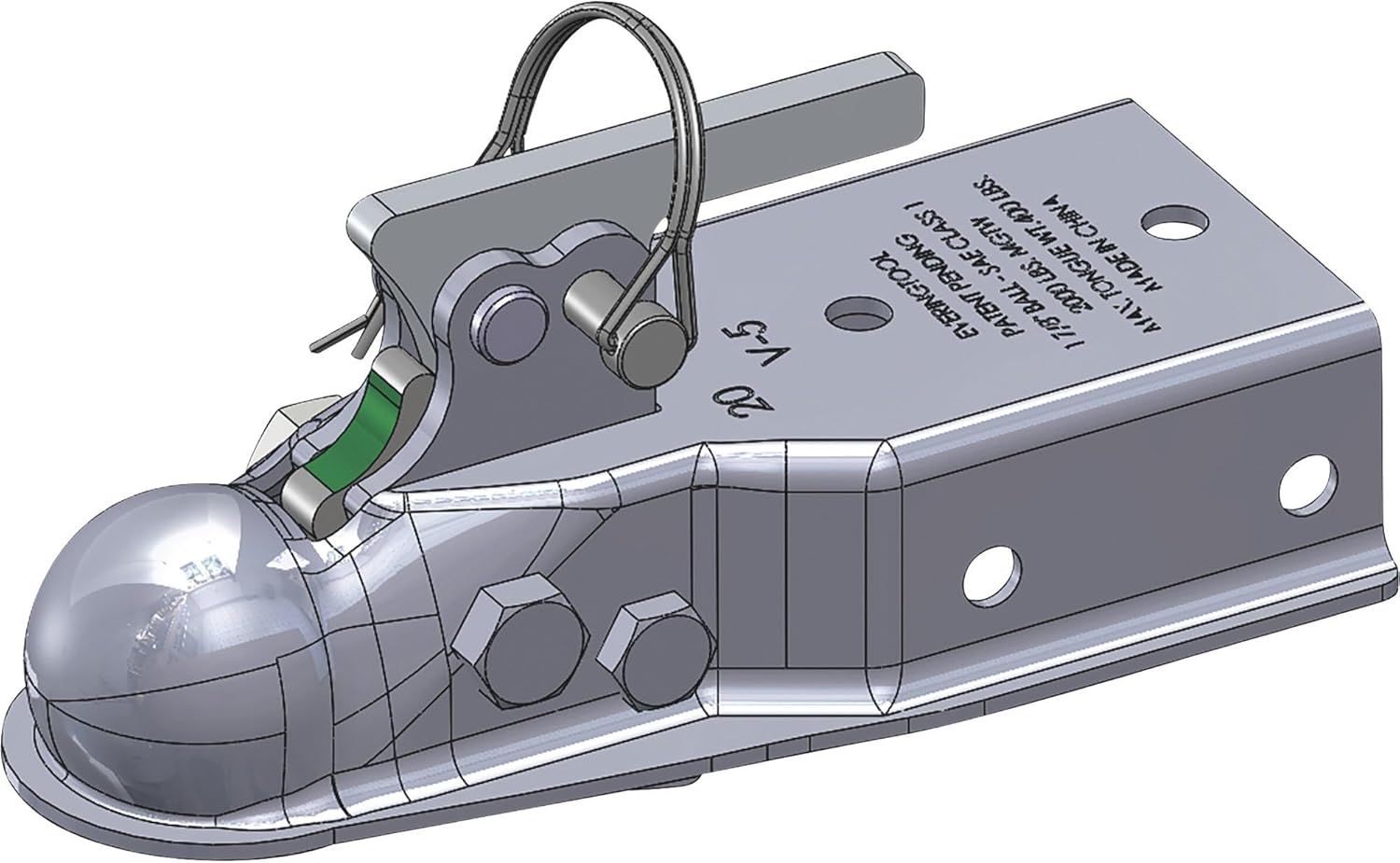 The Ultra-Tow XTP Auto-Locking Trailer Coupler insures your trailer is securely attached to tow vehicle, even if you forget the safety clip. Hitch resets itself when jacking hitch off ball. Meets or exceeds SAE, VESC V-5 and CSA strength requirements. Works with 1 7/8in. coupler ball. Fits inside 3in.W mounting channel. Steel construction.