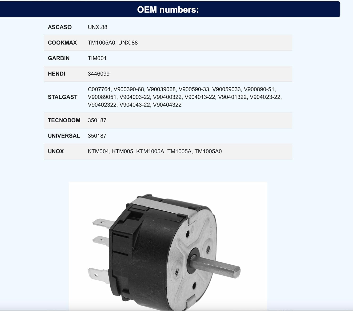 Unox Timer KTM1005A M2 60 MIN Mechanical for Convection Oven
