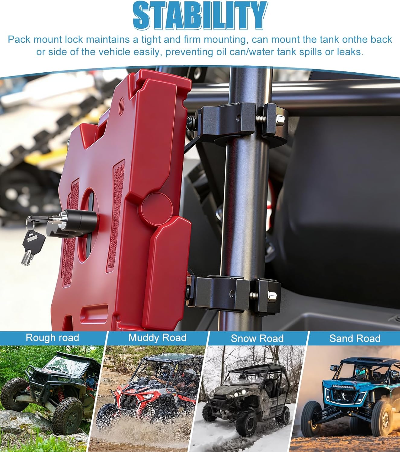 | Included Components | 1 X 1”-2” Roll Bar Mount, 1 X RX-LOX-PM Gas Can Pack Mount with Keys Locking |